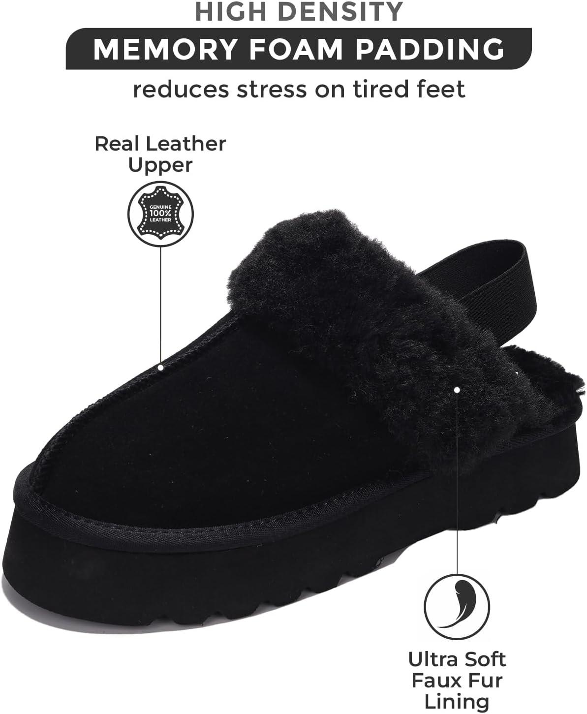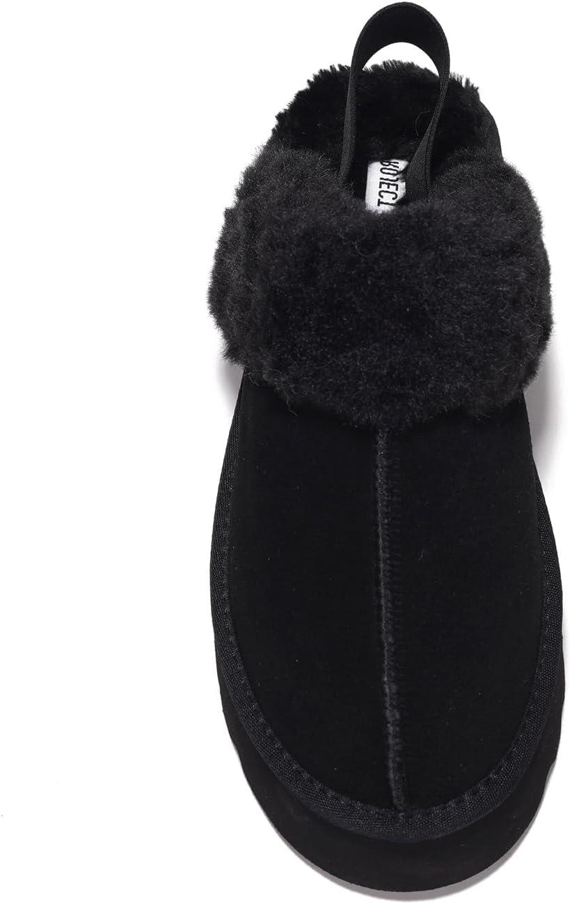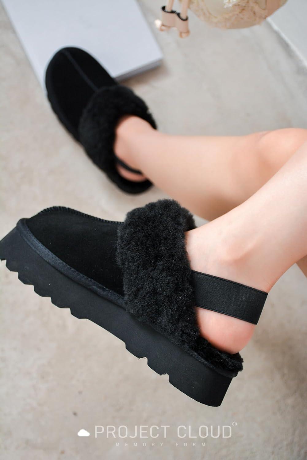 Project Cloud Genuine Suede Slippers for Women Indoor & Outdoor Disquette Womens Sandals Memory Foam Clogs for Women Shoes – Fur Water-Resistant House Shoes for Women Footwear (Slingy)(Black)
