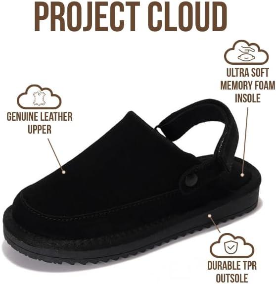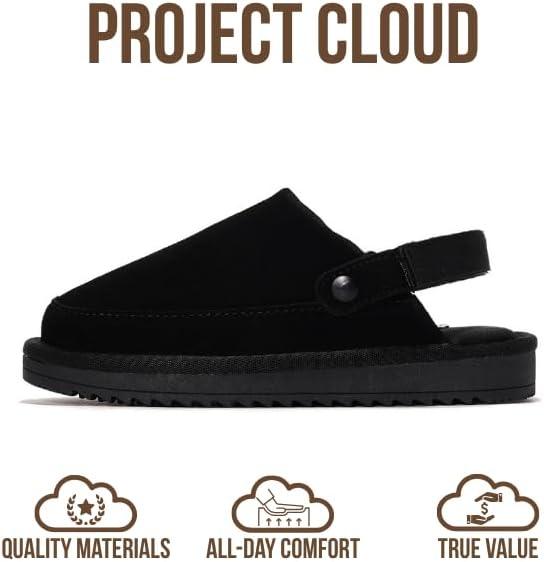 Project Cloud Kids Clogs Genuine Leather with Back Strap – Memory Foam & Lightweight Slip-on Boys and Girls Sandals with Adjustable Straps – Non-Slip Clogs for Kids Sandals (Little Goldstar)(Black Suede)