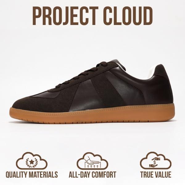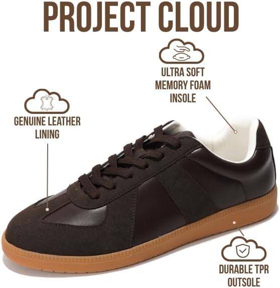 Project Cloud Leather Sneakers for Men Shoes – Memory Foam Insole Non-Slip Casual Shoes for Men Footwear – Lightweight Vegan Leather Fashion Sneakers (Jake)(Brown)