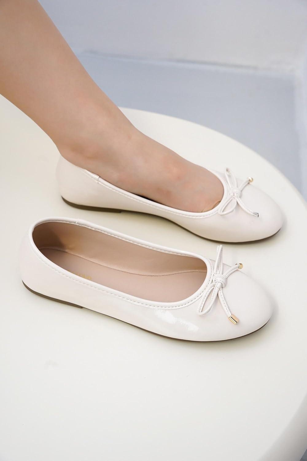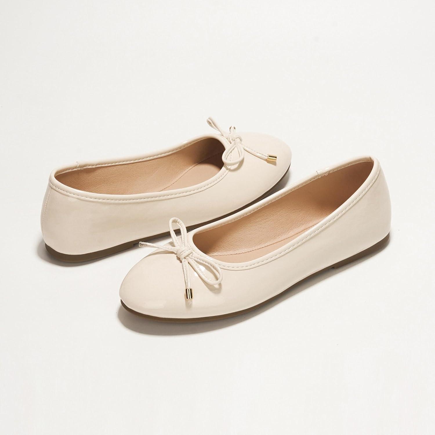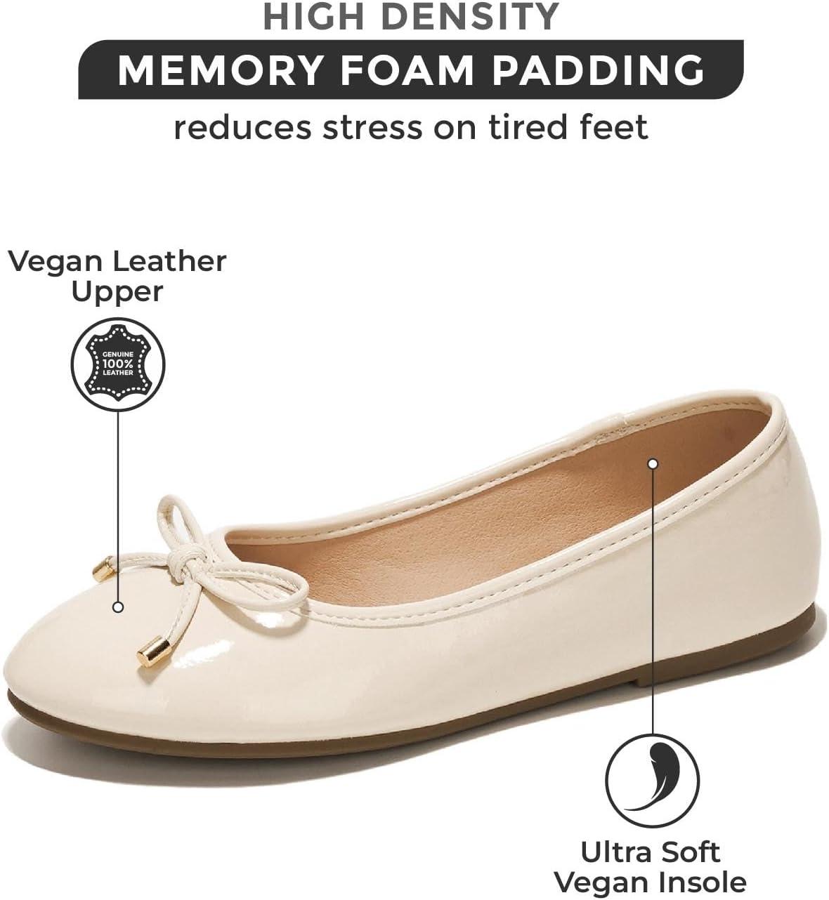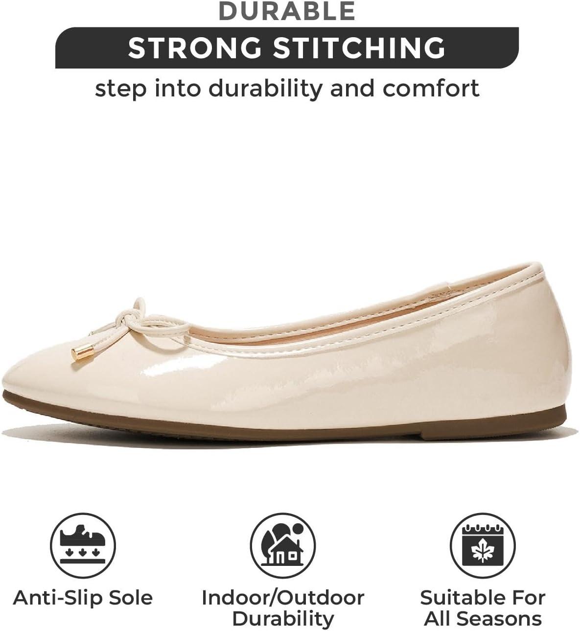 Project Cloud Memory Foam Ballet Flats Shoes for Women Footwear and Lightweight Casual Flats for Women – Non Slip Comfortable Ballet Shoes (Ellison)(Bone Patent)