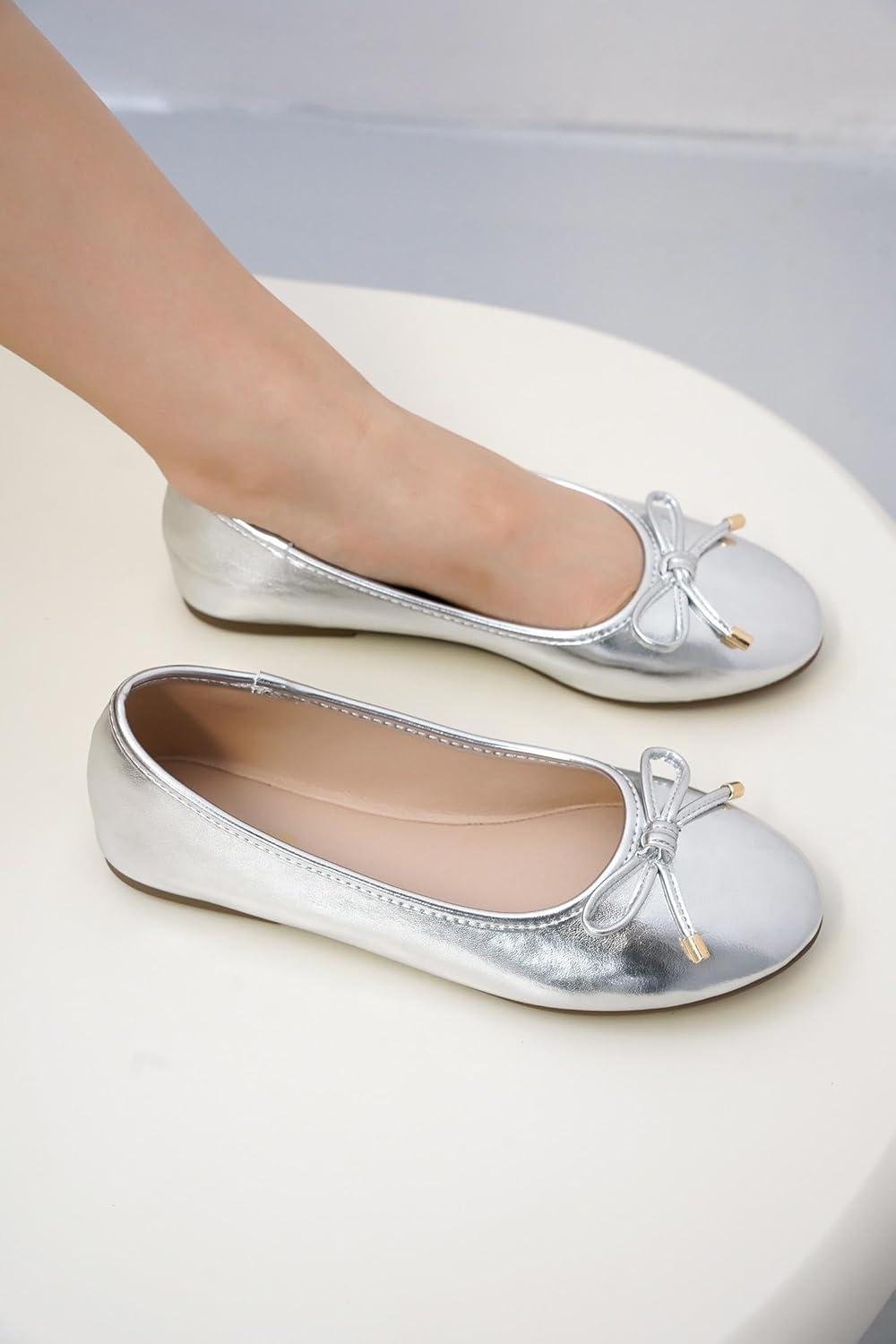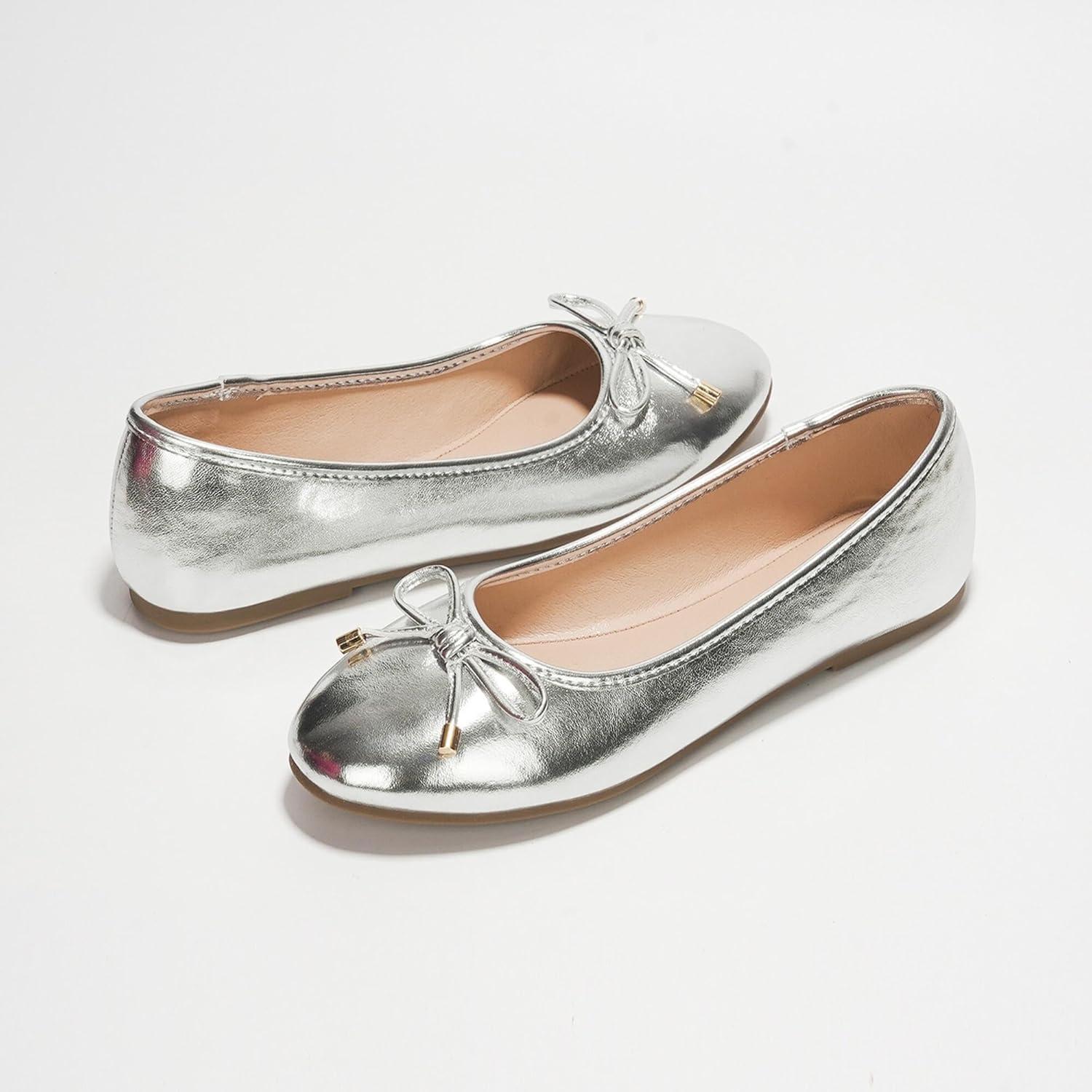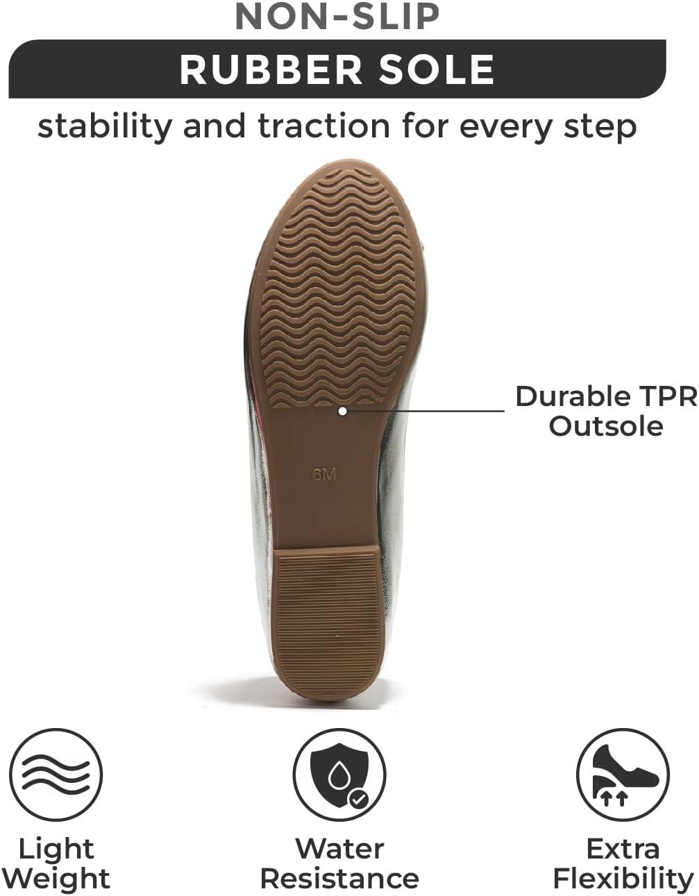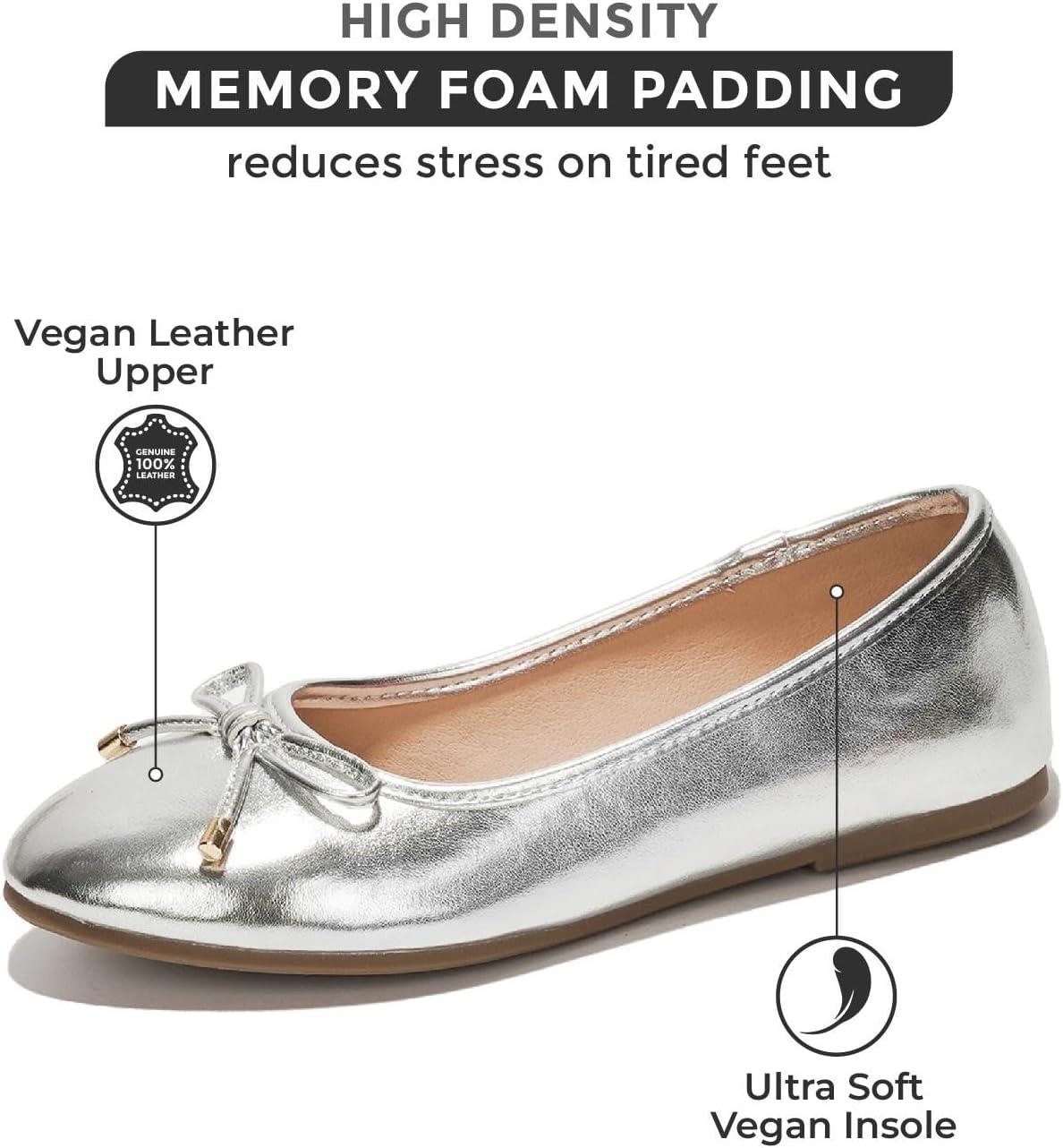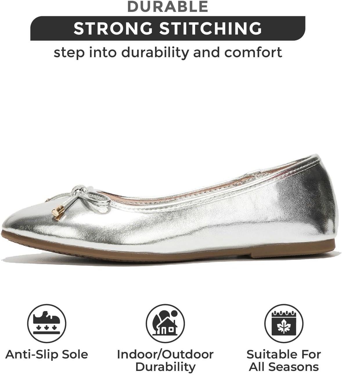 Project Cloud Memory Foam Ballet Flats Shoes for Women Footwear and Lightweight Casual Flats for Women – Non Slip Comfortable Ballet Shoes (Ellison)(Silver)