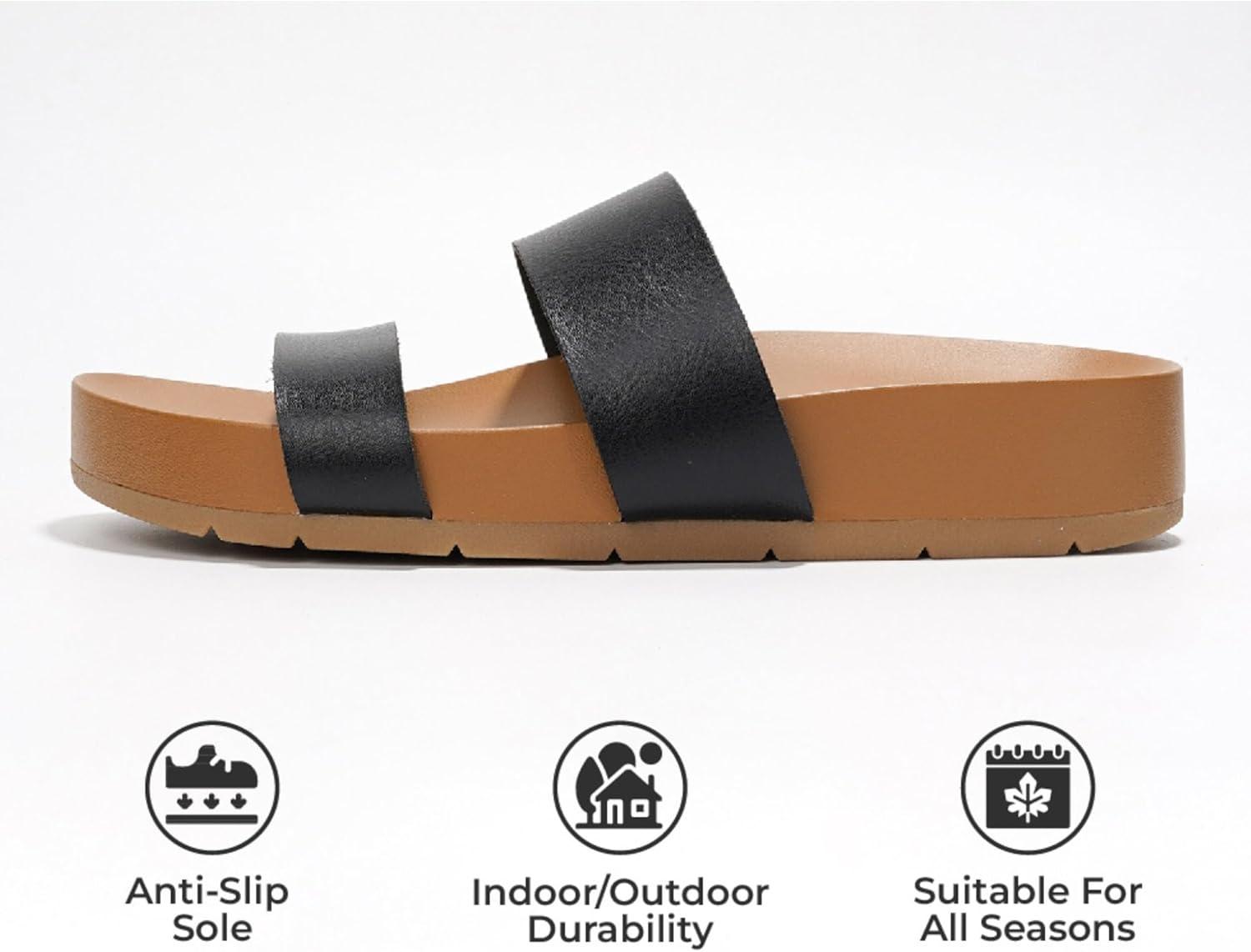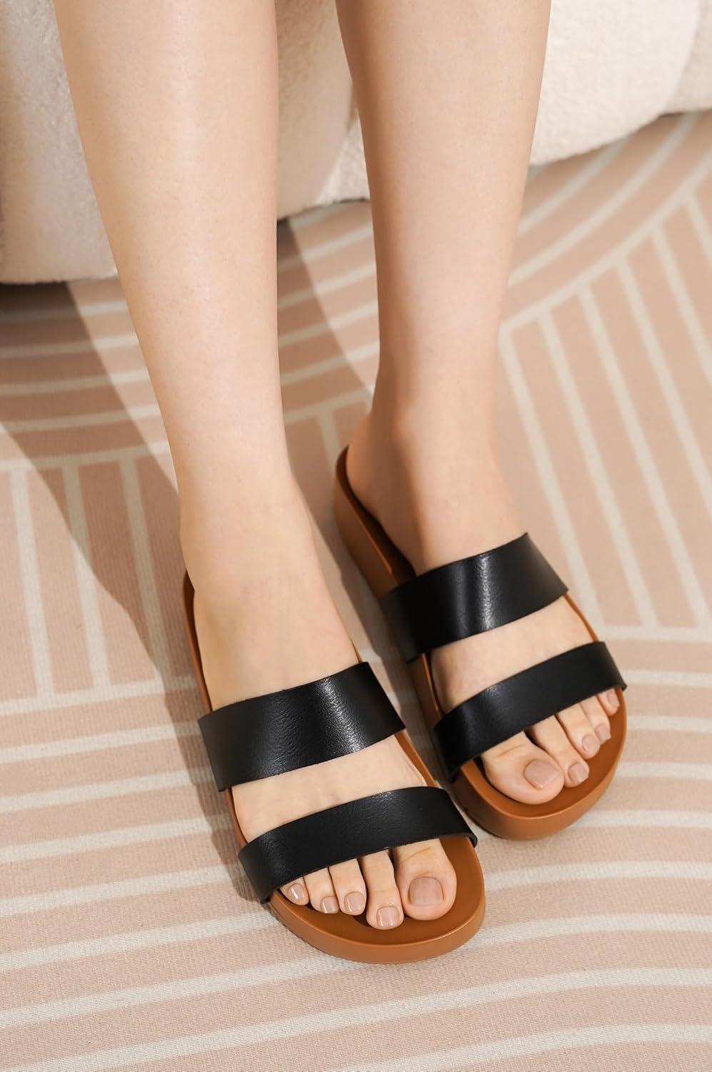 Step into effortless style and comfort with our versatile sandals women, designed for modern women who value both fashion and functionality. Made from premium vegan leather, these women's sandals offer a cruelty-free option without compromising on quality. Featuring a lightweight feel, these platform sandals women are perfect for everyday wear, beach trips, or casual strolls. The durable TPR sole ensures these comfortable sandals for women provide excellent grip and stability, making them reliable beach sandals for woman. Designed with a trendy 2-strap silhouette, these strappy sandals for women elevate your outfit while keeping your feet secure and relaxed. Whether you're searching for stylish beach sandals, womens slides, or womens sandals comfortable enough for long days, these sandals have you covered. Ideal as womens platform sandals, easy-to-wear women slides, or go-to slide sandals women need for versatile styling, they are the perfect pair for every season. Add these to your womens fashion collection as your must-have spring sandals for women 2025, women sandals, and womens slides that transition seamlessly from beach to city.
