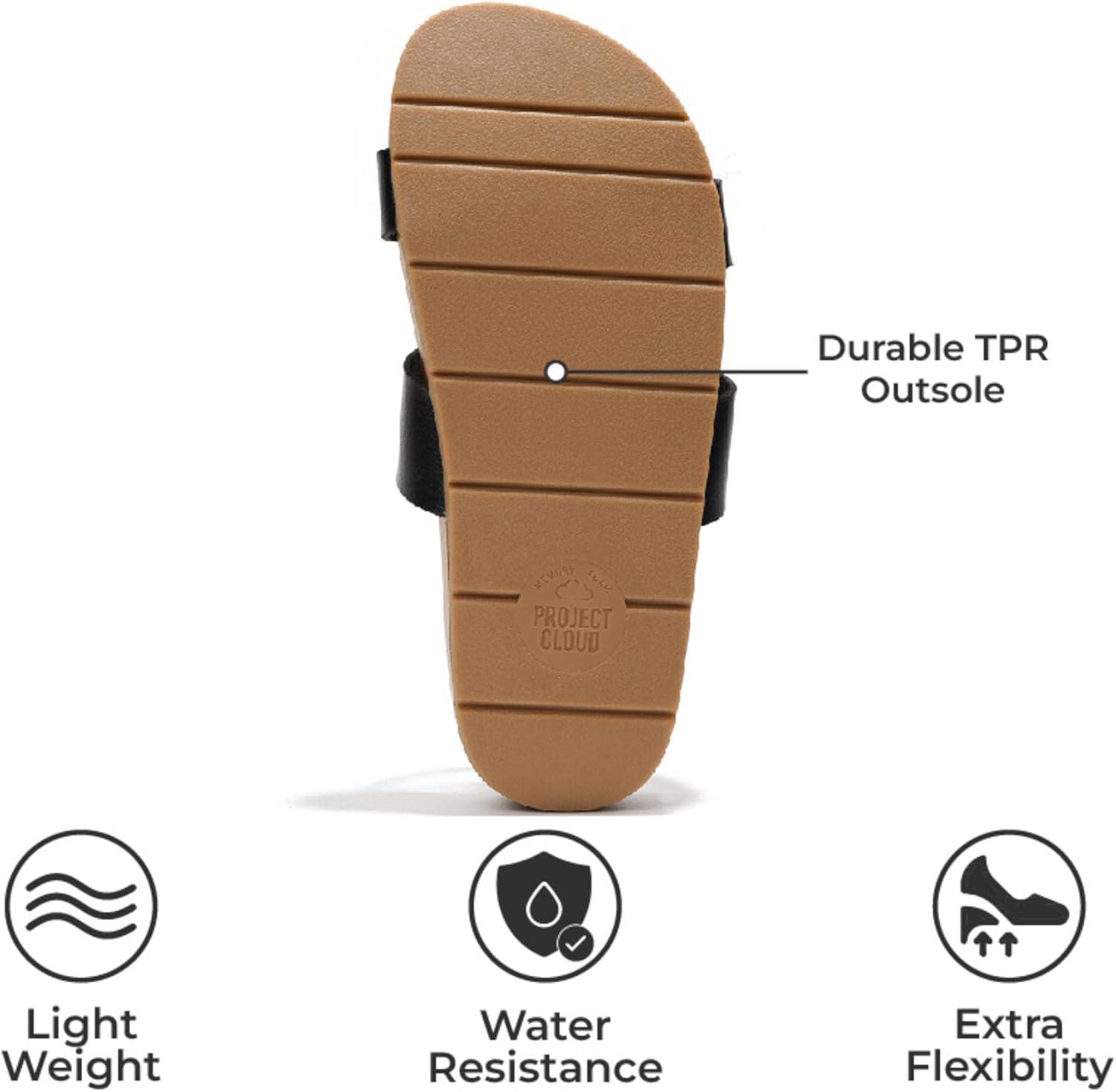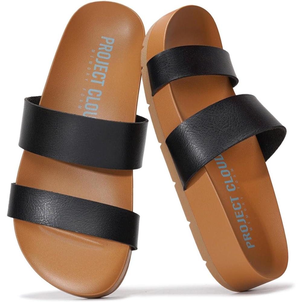 Project Cloud Memory Foam Slide Sandals Women Footwear – Lightweight Two-strap and Non-Slip Vegan Leather Platform Slides – Summer Sandals for Women 2025 (HILLTOP)(Black)