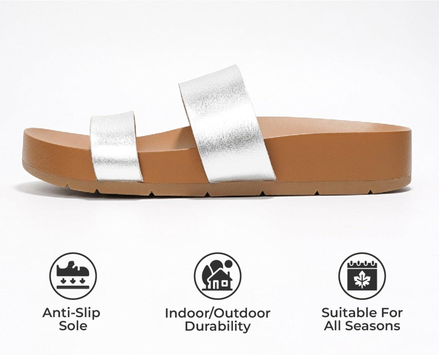 Step into effortless style and comfort with our versatile sandals women, designed for modern women who value both fashion and functionality. Made from premium vegan leather, these women's sandals offer a cruelty-free option without compromising on quality. Featuring a lightweight feel, these platform sandals women are perfect for everyday wear, beach trips, or casual strolls. The durable TPR sole ensures these comfortable sandals for women provide excellent grip and stability, making them reliable beach sandals for woman. Designed with a trendy 2-strap silhouette, these strappy sandals for women elevate your outfit while keeping your feet secure and relaxed. Whether you're searching for stylish beach sandals, womens slides, or womens sandals comfortable enough for long days, these sandals have you covered. Ideal as womens platform sandals, easy-to-wear women slides, or go-to slide sandals women need for versatile styling, they are the perfect pair for every season. Add these to your womens fashion collection as your must-have spring sandals for women 2025, women sandals, and womens slides that transition seamlessly from beach to city.