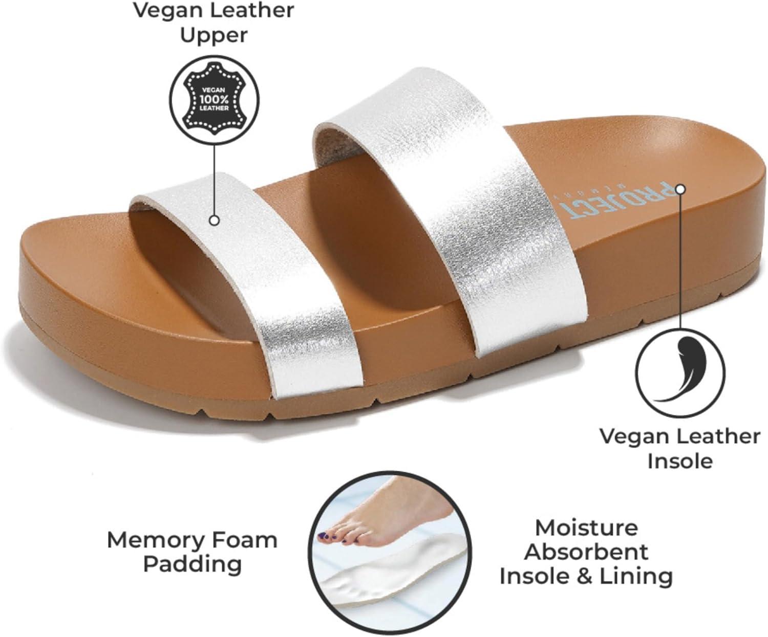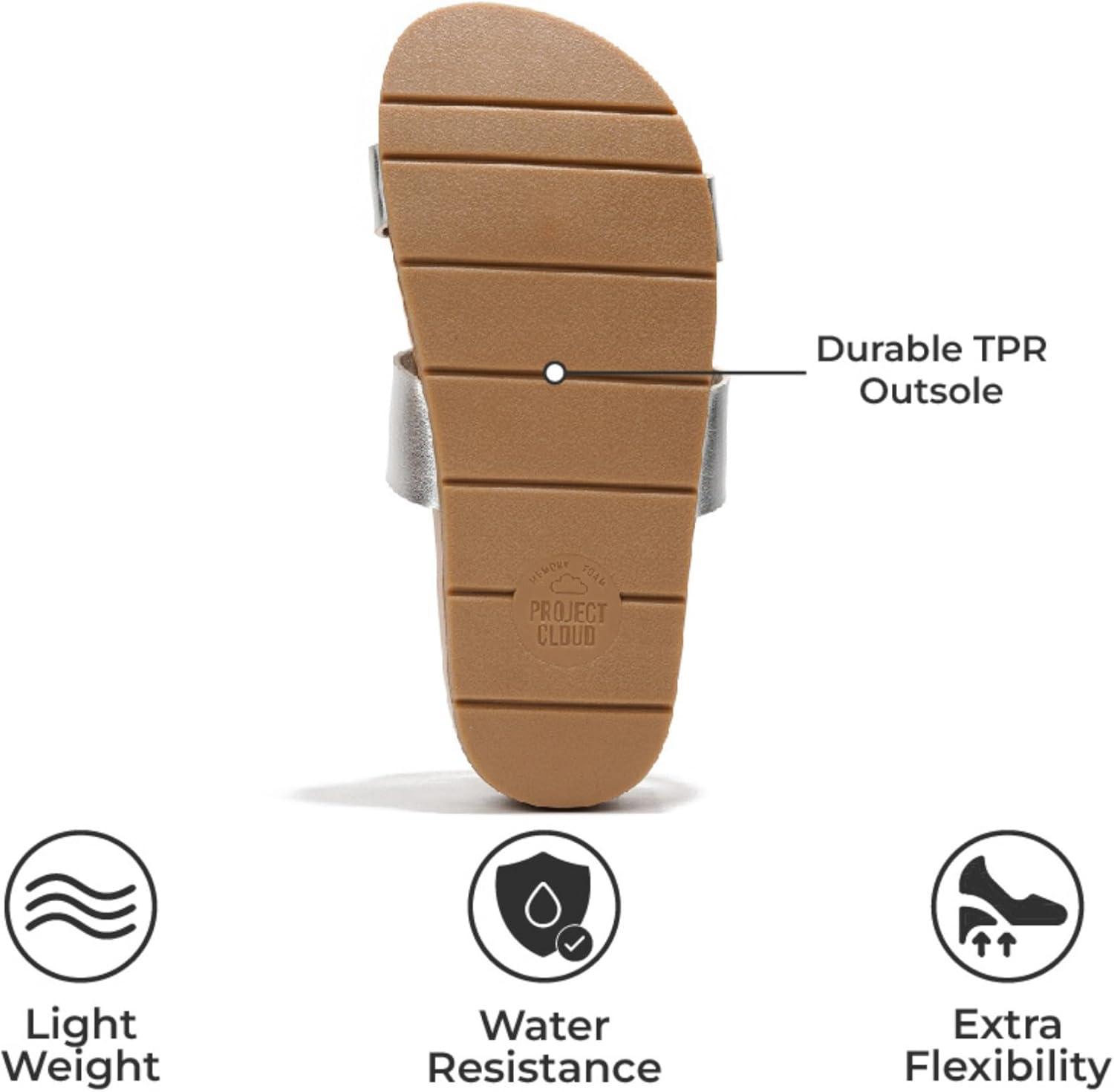 Project Cloud Memory Foam Slide Sandals Women Footwear – Lightweight Two-strap and Non-Slip Vegan Leather Platform Slides – Summer Sandals for Women 2025 (HILLTOP)(Silver)