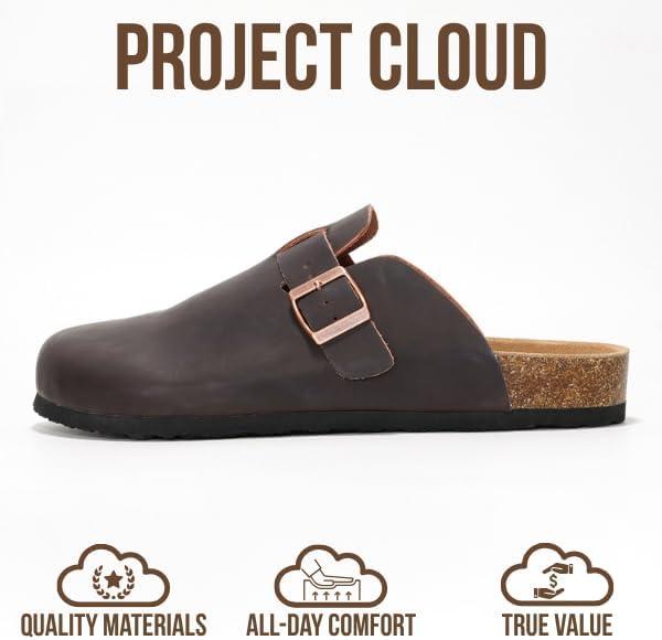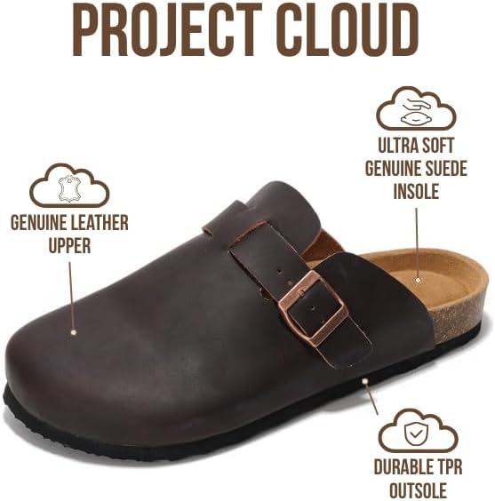 Project Cloud Mens Clogs – 100% Full Grain Genuine Leather Memory Foam Clogs for Men Arch Support Cork Footbed – Non Slip Platform Mules (Brooklyn)(Brown Distressed)