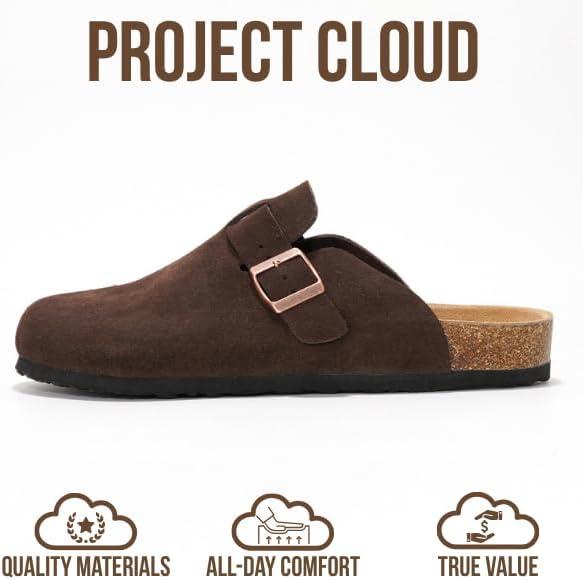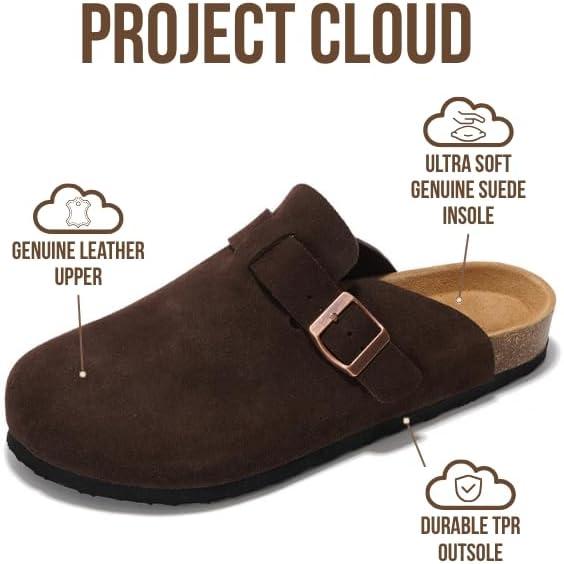 Project Cloud Mens Clogs – 100% Full Grain Genuine Leather Memory Foam Clogs for Men Arch Support Cork Footbed – Non Slip Platform Mules (Brooklyn)(Brown Suede)