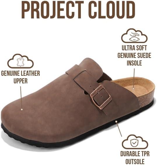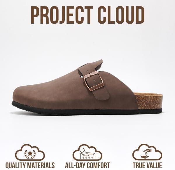 Project Cloud Mens Clogs – 100% Full Grain Genuine Leather Memory Foam Clogs for Men Arch Support Cork Footbed – Non Slip Platform Mules (Brooklyn)(Brown)