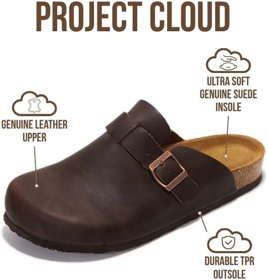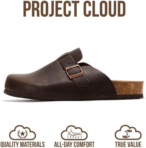 Project Cloud Mens Clogs – 100% Full Grain Genuine Leather Memory Foam Clogs for Men Arch Support Cork Footbed – Non Slip Platform Mules (Brooklyn)(Chocolate Distressed)
