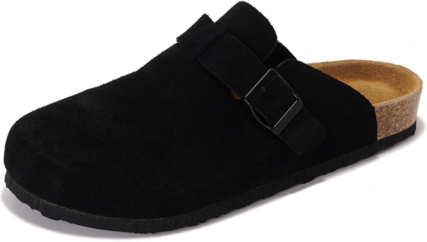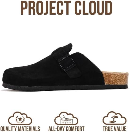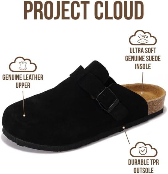 Project Cloud Mens Clogs – 100% Full Grain Genuine Leather Memory Foam Clogs for Men Arch Support Cork Footbed – Non Slip Platform Mules (Brooklyn)(Jet Black Suede)