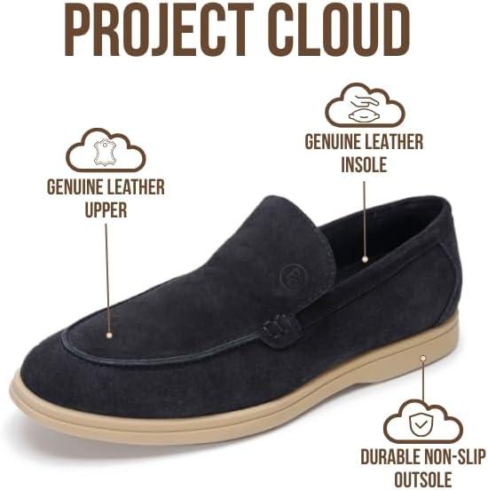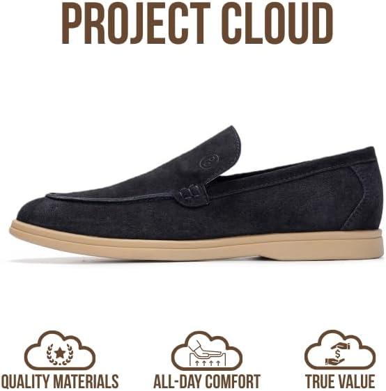 Project Cloud Mens Shoes 100% Genuine Leather with Memory Foam Insole Venetian Loafers for Men Footwear – Non Slip Moccasins Loafer Mens Casual Shoes (Mark)(Navy Suede)