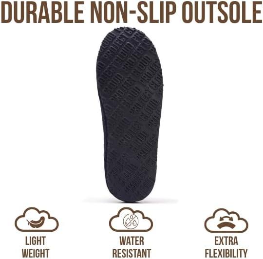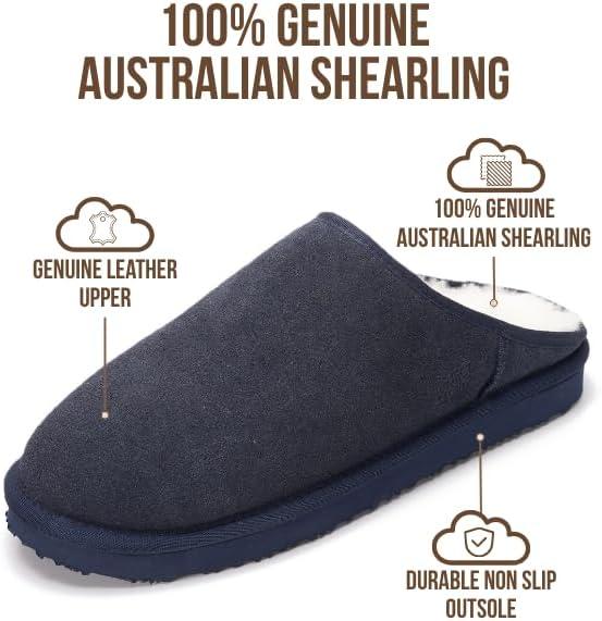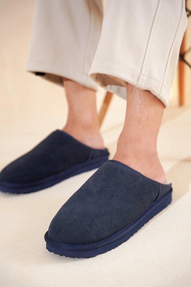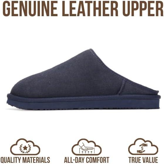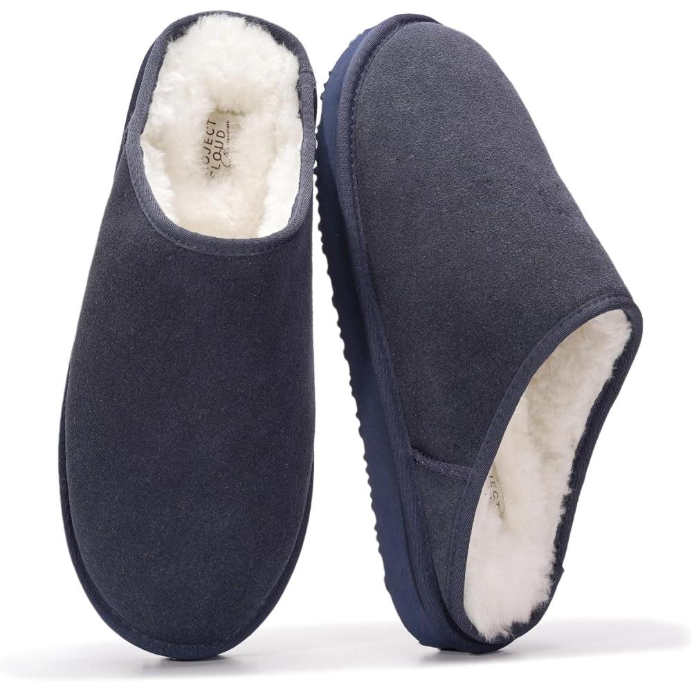Project Cloud Mens Slippers 100% Genuine Leather and Genuine Shearling Lining – House Slippers for Men with Memory Foam Insole – Lightweight & Non Slip Mens House Shoes (Chill)(Navy Suede)