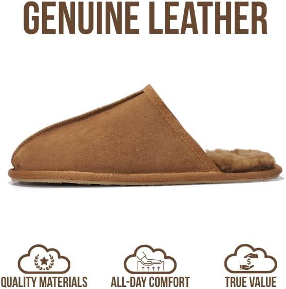 Project Cloud Mens Slippers 100% Genuine Leather and Genuine Shearling Lining – House Slippers for Men with Memory Foam Insole – Lightweight & Non Slip Mens House Shoes (Chill)(Scotch Suede Scuff)