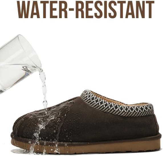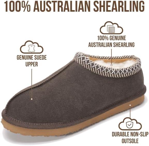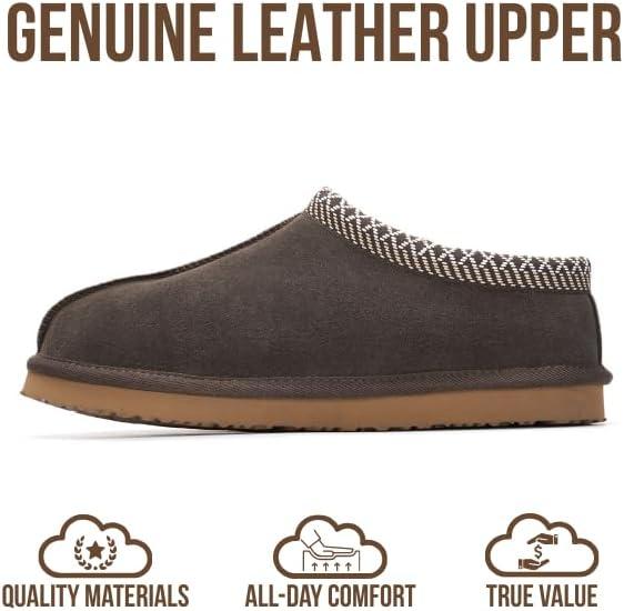 Project Cloud Mens Slippers 100% Genuine Leather with Australian Shearling Lining & Memory Foam Insole Outdoor & House Slippers for Men – Non-Slip Fuzzy Mens Shoes(Relaxation)(Chocolate)