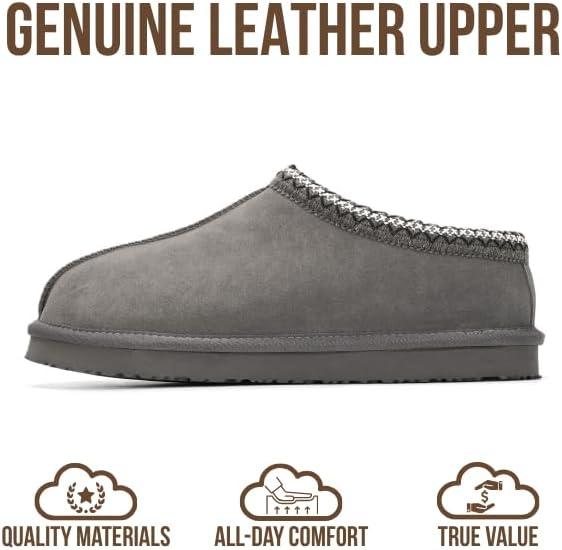 Project Cloud Mens Slippers 100% Genuine Leather with Australian Shearling Lining & Memory Foam Insole Outdoor & House Slippers for Men – Non-Slip Fuzzy Mens Shoes(Relaxation)(Grey)