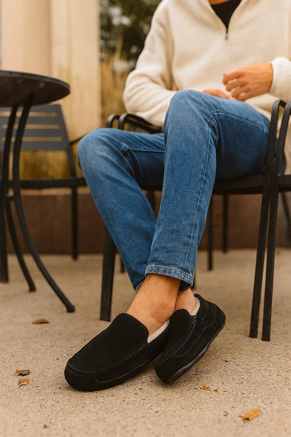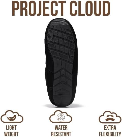 Project Cloud Mens Slippers 100% Genuine Leather with Memory Foam Insole Mens Shoes – Non-Slip and Lightweight Indoor and Outdoor Slippers for Men (Oswin)(Black Suede)