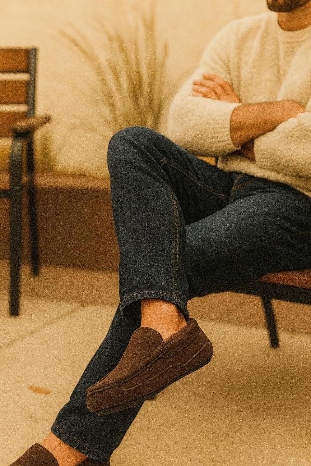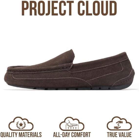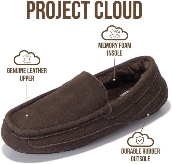 Project Cloud Mens Slippers 100% Genuine Leather with Memory Foam Insole Mens Shoes – Non-Slip and Lightweight Indoor and Outdoor Slippers for Men (Oswin)(Chocolate Suede)