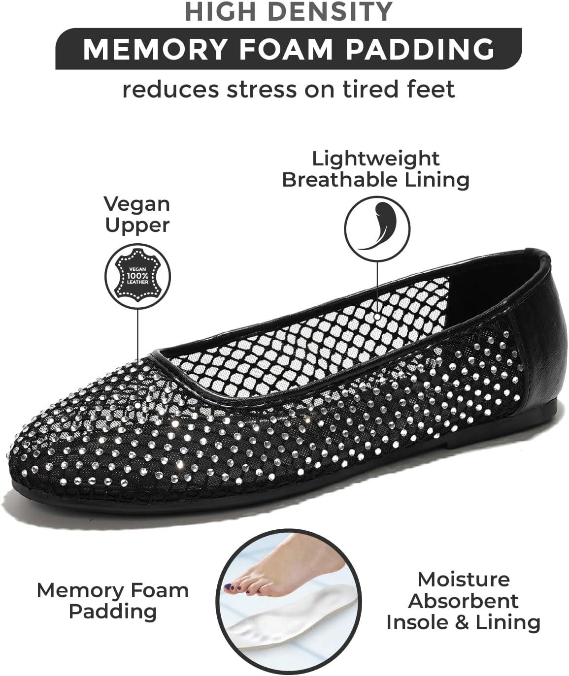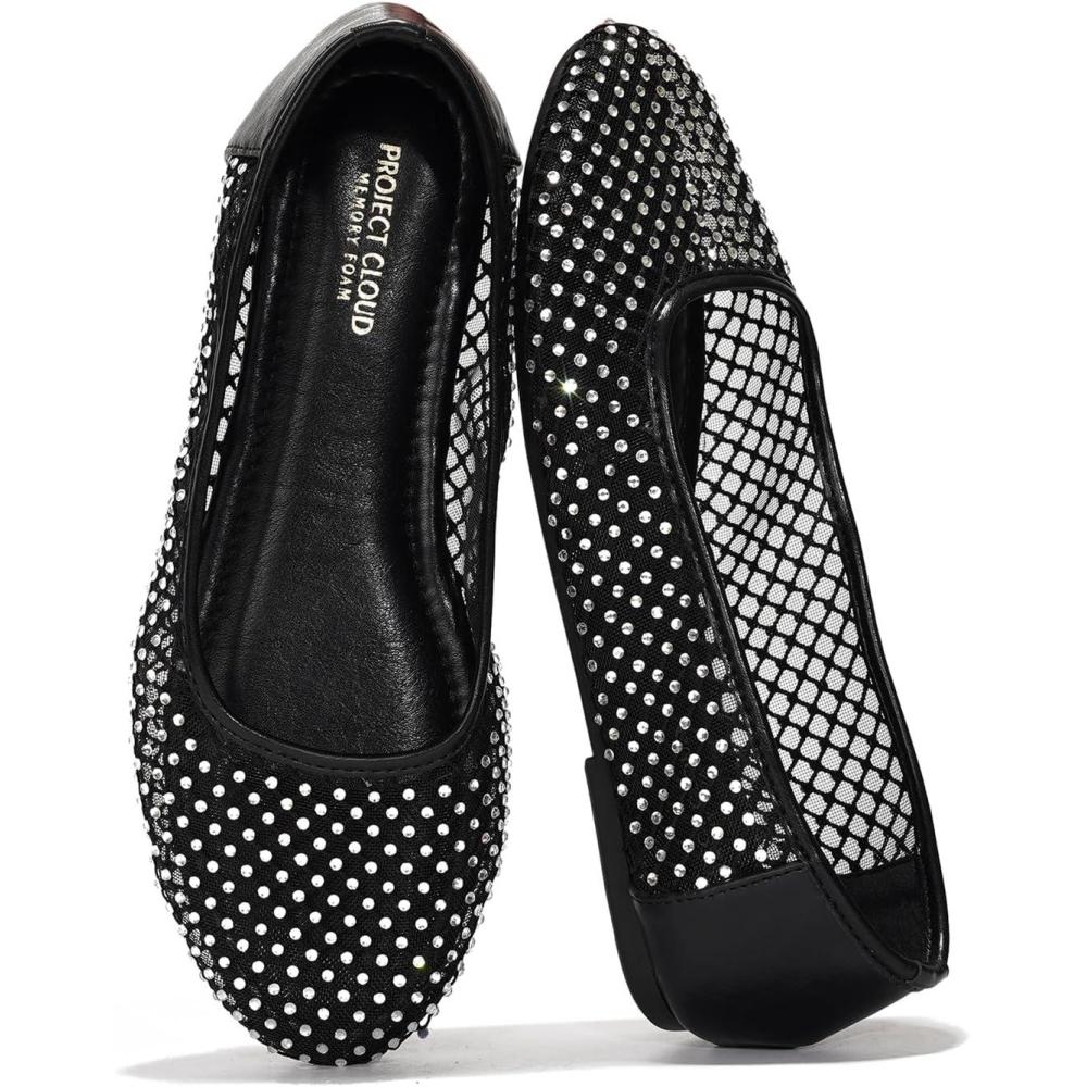 Project Cloud Mesh Womens Flats – Memory Foam Ballet Flats Shoes for Women – Non Slip Ballerina Womens Sneakers – Trendy Slip on Flat Shoes for Women (Ruthie)(Black)