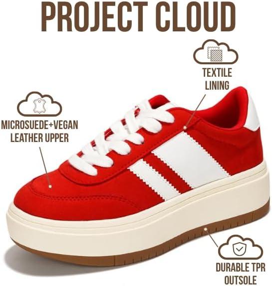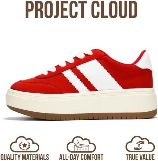 Project Cloud Platform Girls Sneakers – Lightweight Memory Foam Insole Lace-up Kids Shoes with Trendy Styles – Non-Slip Fashion Platform Boys and Girls Shoes (Little Nita)(Red)