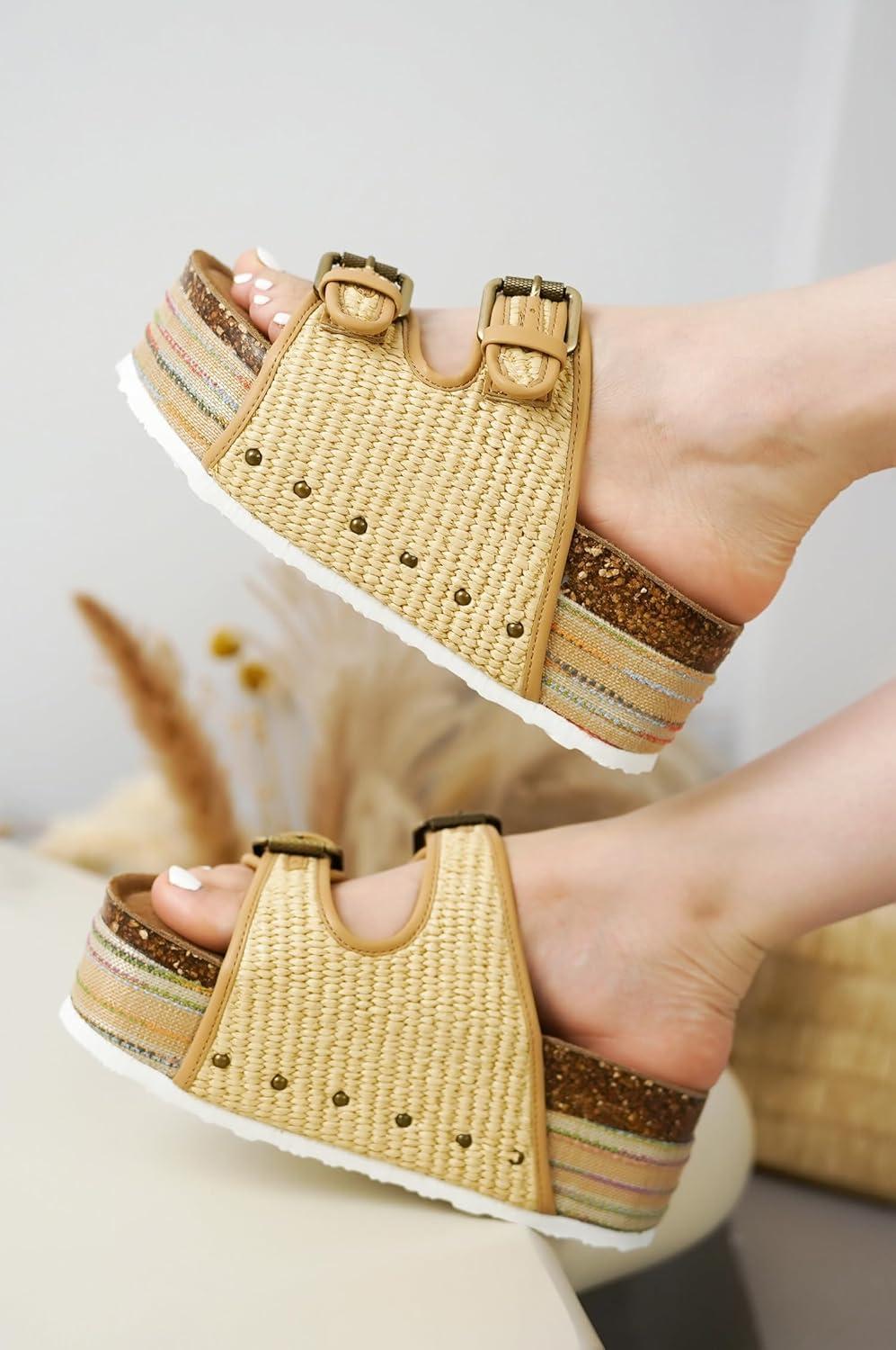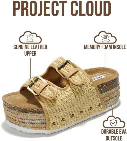 Project Cloud Platform Sandals Women Footwear – Genuine Leather and Durable EVA Sole for Non-Slip and Comfortable Platform – Fashion Summer Sandals for Women 2025 (Oliy)(Raffia)