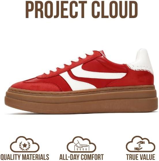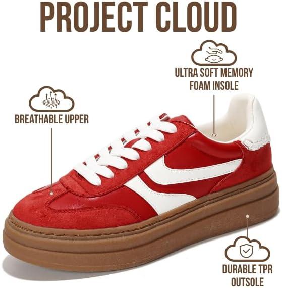 Project Cloud Platform Sneakers for Women Footwear – Memory Foam Insole Womens Shoes, Lightweight and Non-Slip Sole Lace Up Fashion Sneakers (Dodge)(Red)