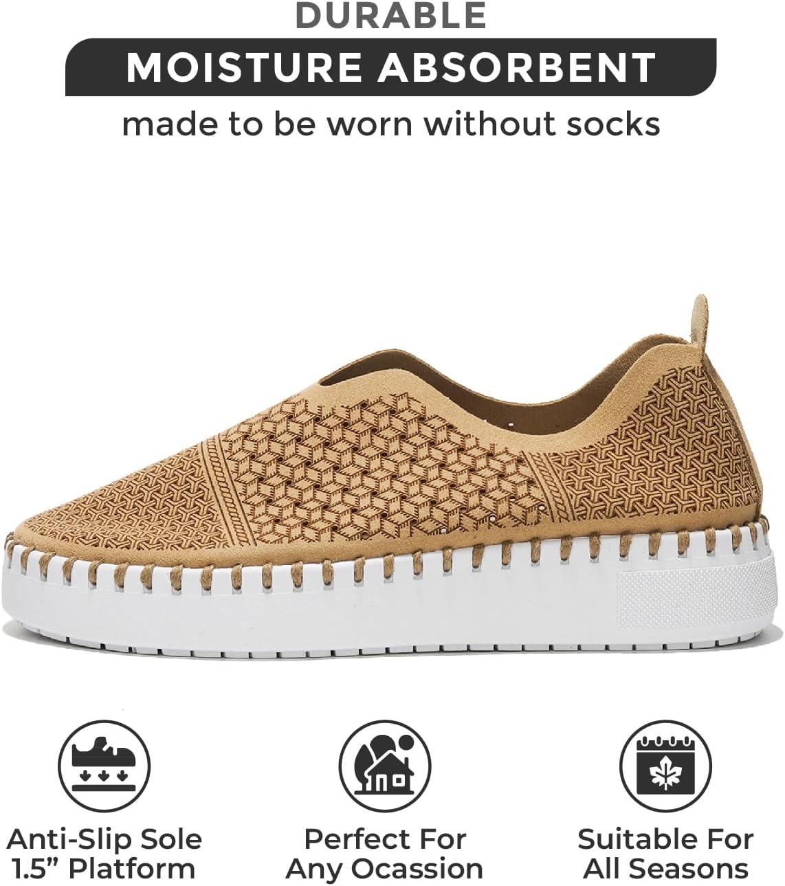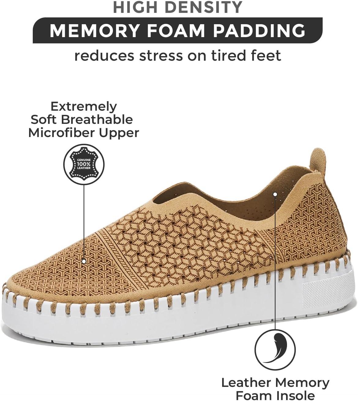 Project Cloud Platform Sneakers for Women – Leather Insole Loafers for Women with Memory Foam – Casual Slip On Womens Loafers with Flexible Outsole (Aster)(Nude)