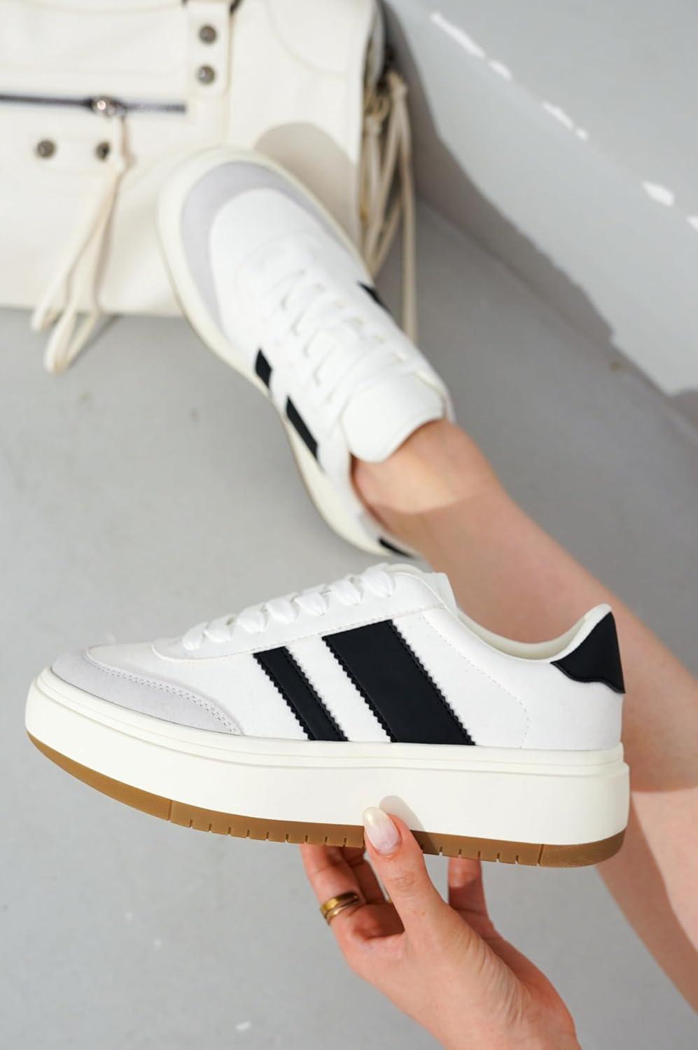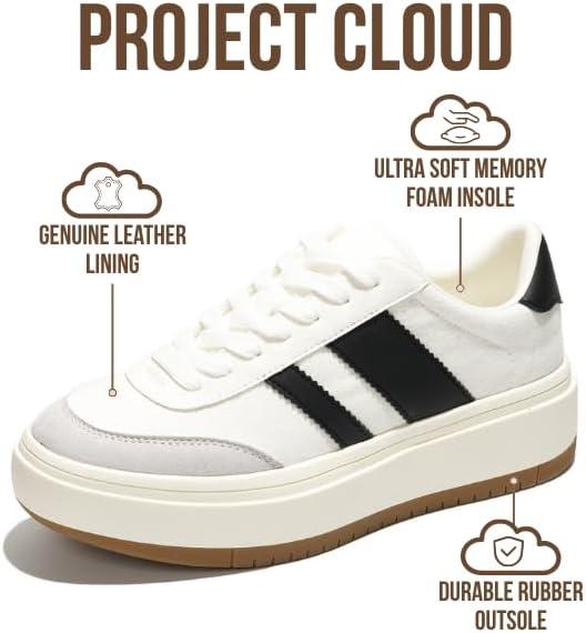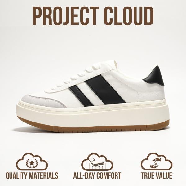 Project Cloud Platform Sneakers for Women – Lightweight Memory Foam Insole Womens Sneakers – Non-Slip Fashion Sneakers for Women Footwear – Women’s Fashion Platform Shoes (Nita)(White-black Stripes)
