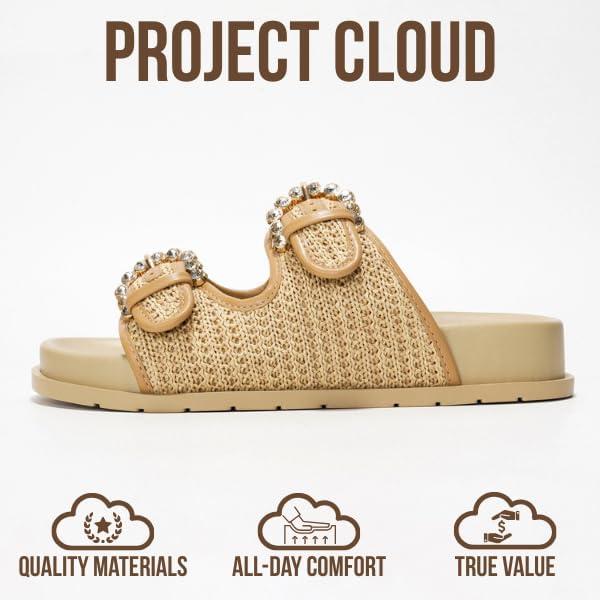 Project Cloud Platform Summer Sandals for Women 2025 – Comfortable and Adjustable Straps Summer Slides with Memory Foam Insole – Non-Slip Casual Womens Sandals(Beige-raffia)