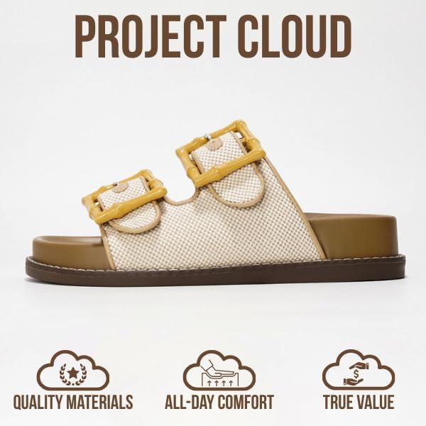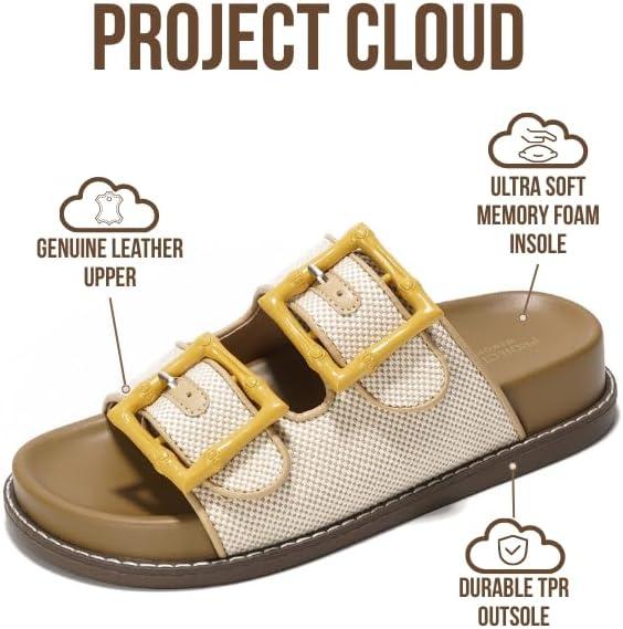 Project Cloud Platform Summer Sandals for Women 2025 – Comfortable and Adjustable Straps Summer Slides with Memory Foam Insole – Non-Slip Casual Womens Sandals(Beige-yellow Buckle)
