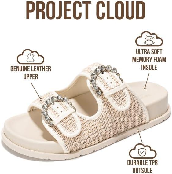 Project Cloud Platform Summer Sandals for Women 2025 – Comfortable and Adjustable Straps Summer Slides with Memory Foam Insole – Non-Slip Casual Womens Sandals(Off-white Raffia)