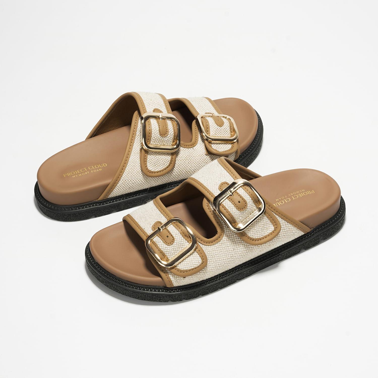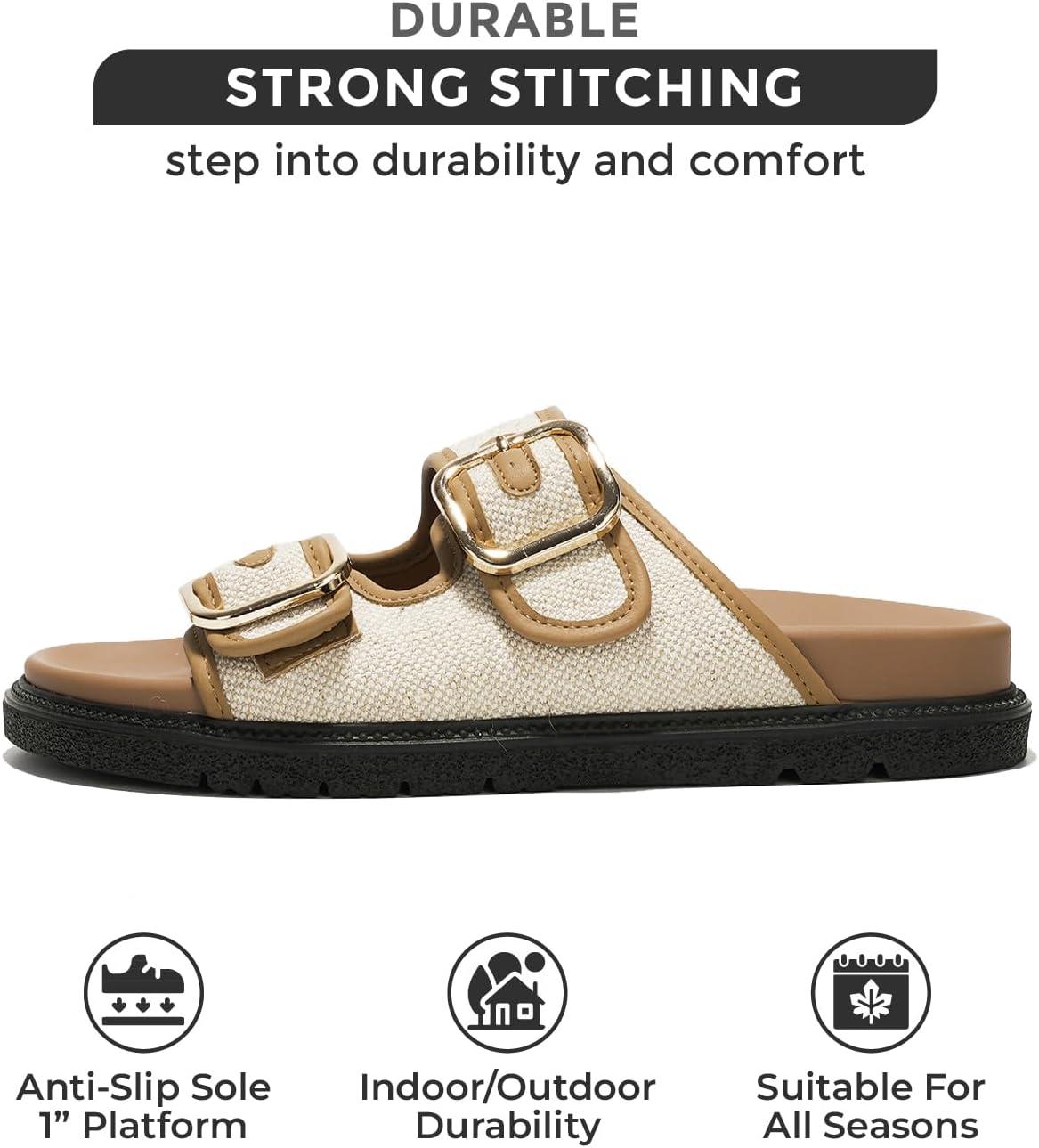Project Cloud Platform Summer Sandals for Women 2025 – Comfortable and Adjustable Straps Summer Slides with Memory Foam Insole – Non-Slip Casual Womens Sandals(Raffia)