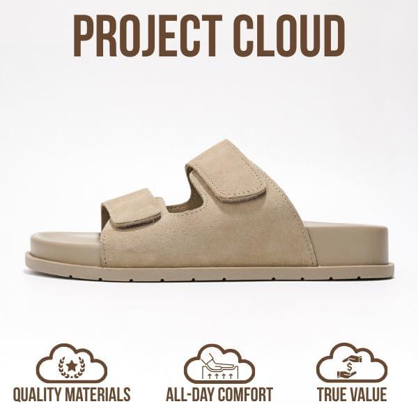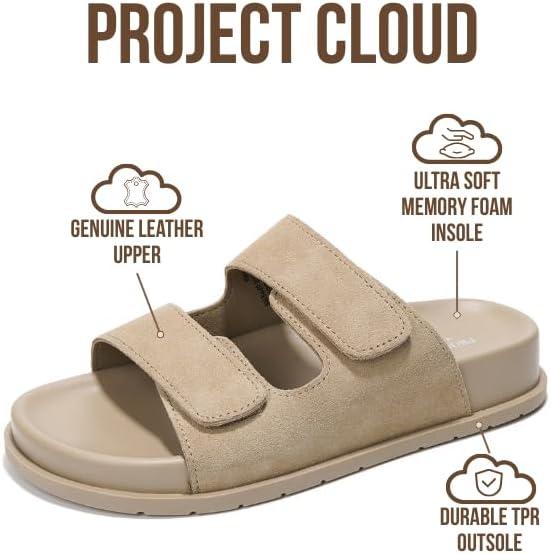 Project Cloud Platform Summer Sandals for Women 2025 – Comfortable and Adjustable Straps Summer Slides with Memory Foam Insole – Non-Slip Casual Womens Sandals(Sleek Taupe)