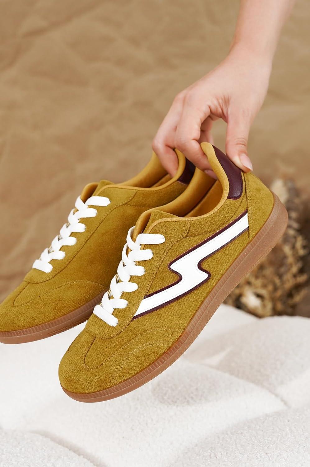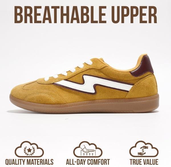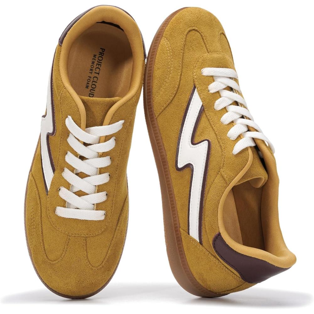 Project Cloud Sneakers for Women – Lace-Up Shoes for Women Trendy Women Sneakers with Memory Foam Insole Women’s Fashion Sneakers Non-Slip Womens Shoes (Irita)(Mustard)