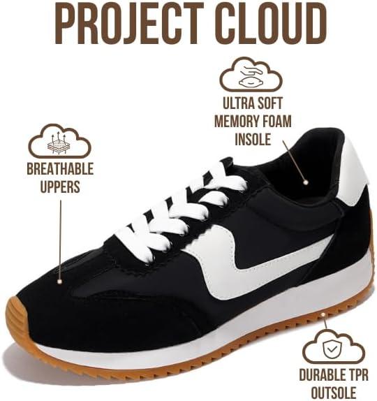 Project Cloud Sneakers for Women – Lightweight Lace-Up Shoes for Women with Memory Foam Insoles – Trendy Womens Shoes – Non-Slip, Comfortable Womens Sneakers (Madison)(Black)