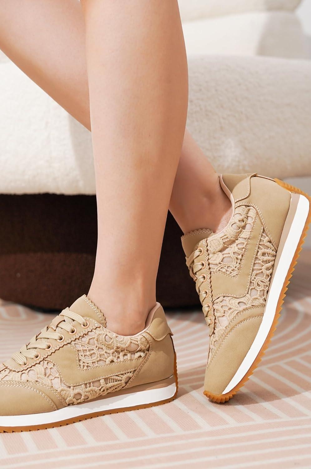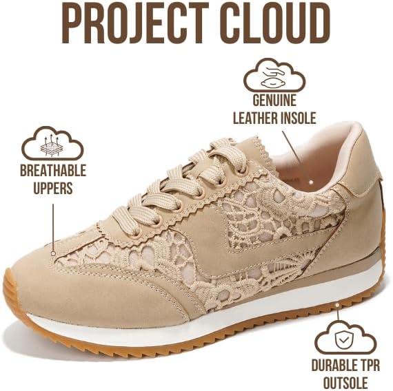 Project Cloud Sneakers for Women – Lightweight Lace-Up Shoes for Women with Memory Foam Insoles – Trendy Womens Shoes – Non-Slip, Comfortable Womens Sneakers (Madison)(Raffia)