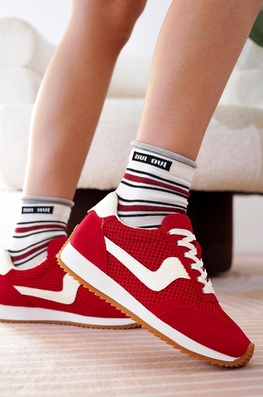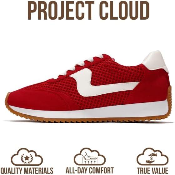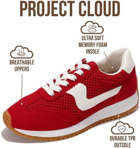 Project Cloud Sneakers for Women – Lightweight Lace-Up Shoes for Women with Memory Foam Insoles – Trendy Womens Shoes – Non-Slip, Comfortable Womens Sneakers (Madison)(Red)