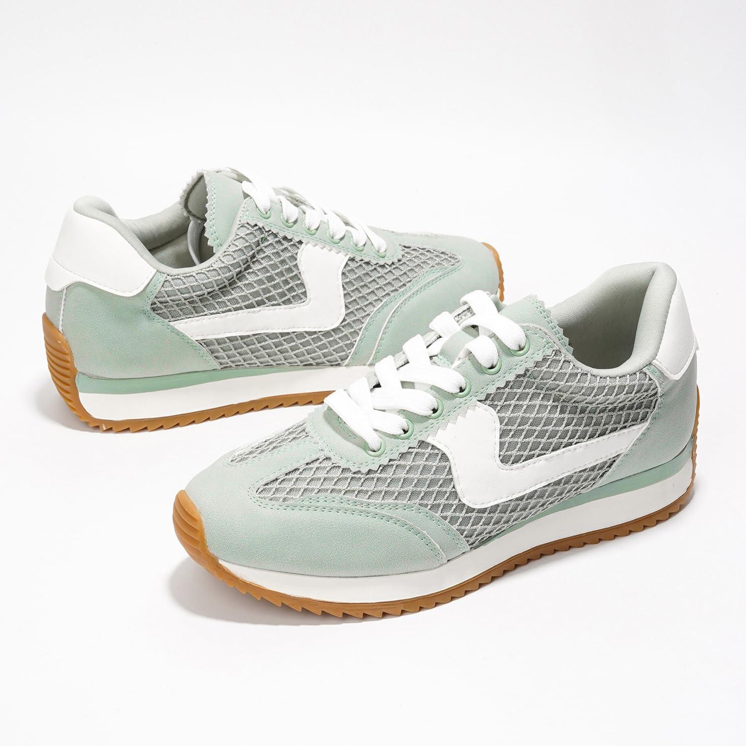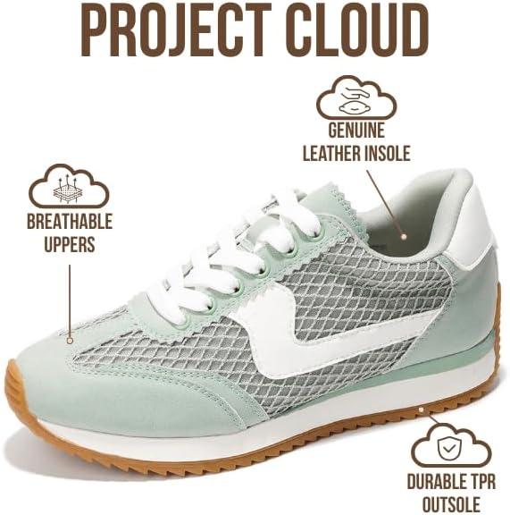 Project Cloud Sneakers for Women – Lightweight Lace-Up Shoes for Women with Memory Foam Insoles – Trendy Womens Shoes – Non-Slip, Comfortable Womens Sneakers (Madison)(Sage)