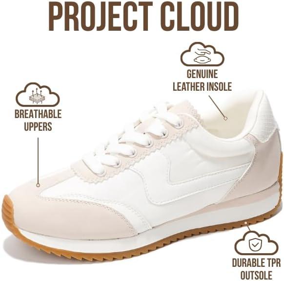 Project Cloud Sneakers for Women – Lightweight Lace-Up Shoes for Women with Memory Foam Insoles – Trendy Womens Shoes – Non-Slip, Comfortable Womens Sneakers (Madison)(White)