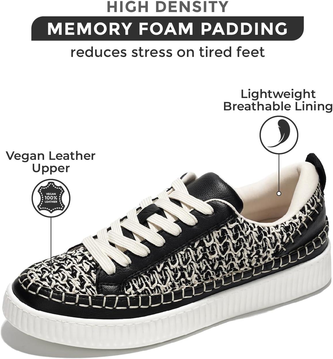 Project Cloud Sneakers for Women – Memory Foam Shoes for Women Lace-Up Women’s Fashion Sneakers Non-Slip Womens Trendy Shoes (Lona)(Black)