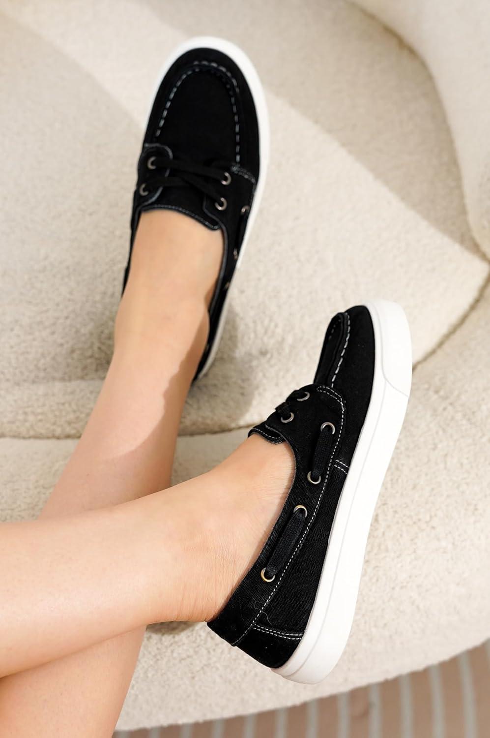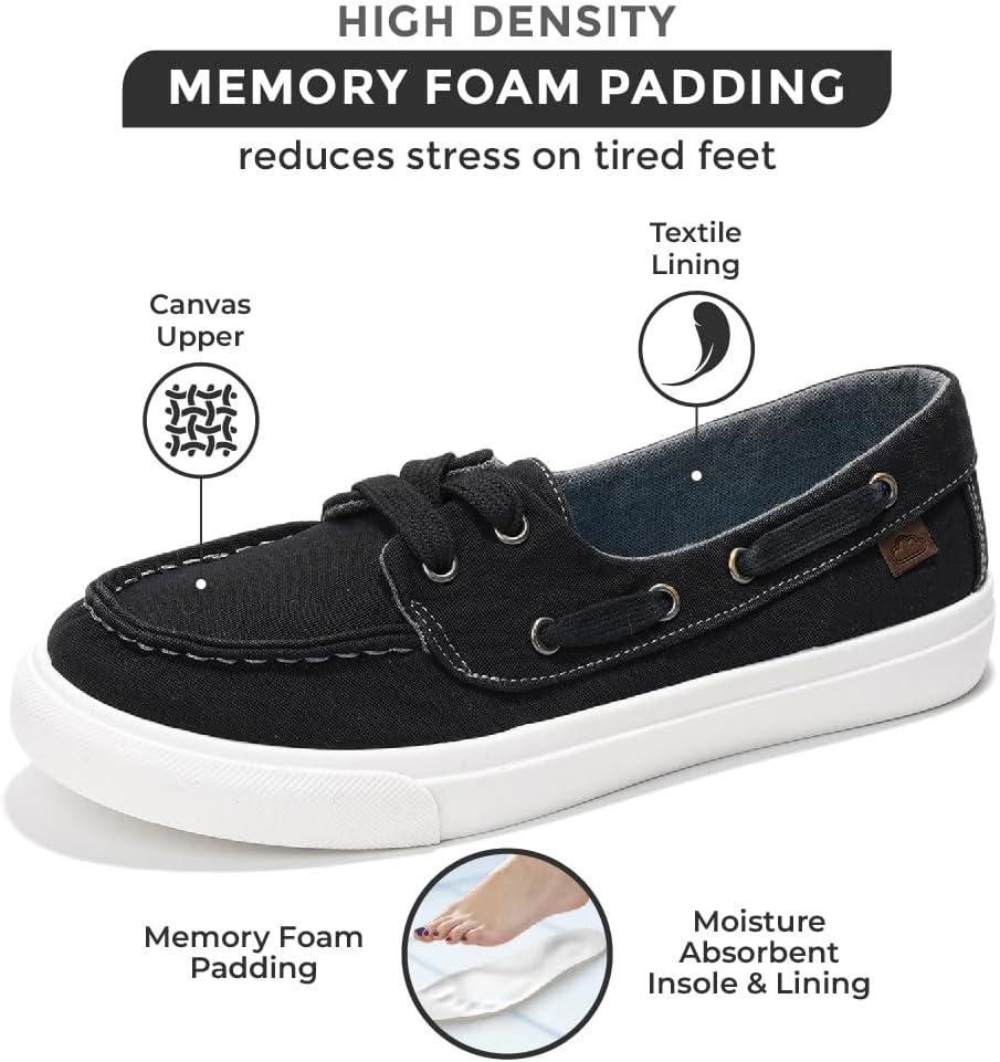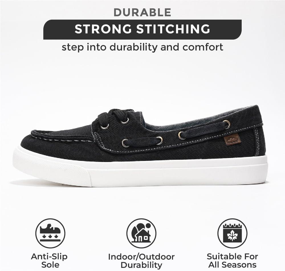 Project Cloud Sneakers for Women – Memory Foam Spring Shoes for Women Footwear – Slip-On Boat Shoes – Non Slip Fashion Sneakers – Lightweight Loafers (Seasalt)(Black)