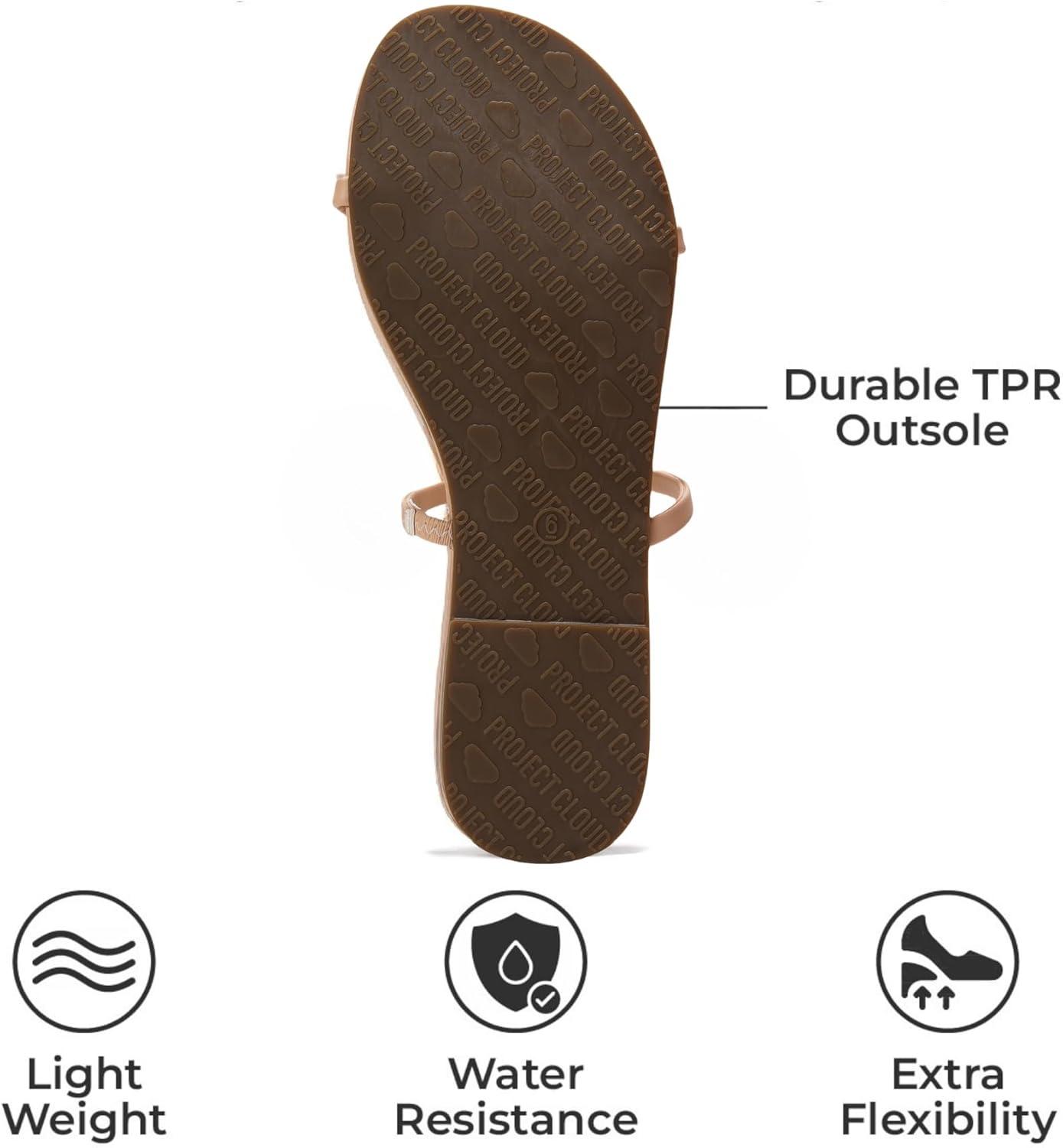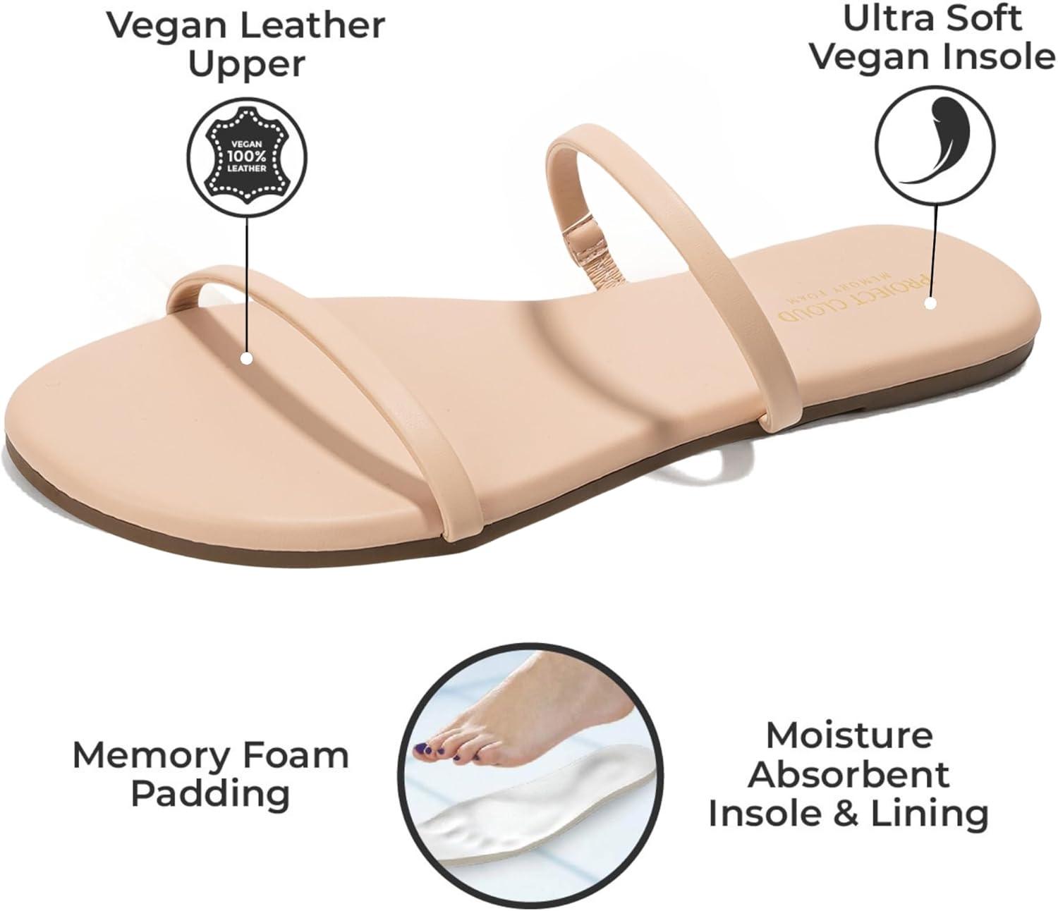 Project Cloud Summer Sandals for Women 2025 – Memory Foam Insole and Vegan Leather Beach Flip Flops for Women – Non Slip and Lightweight Double Strap Womens Sandals (Transition)(Beige)