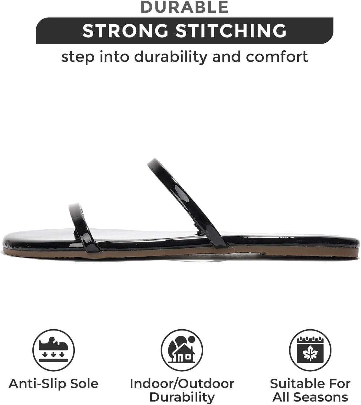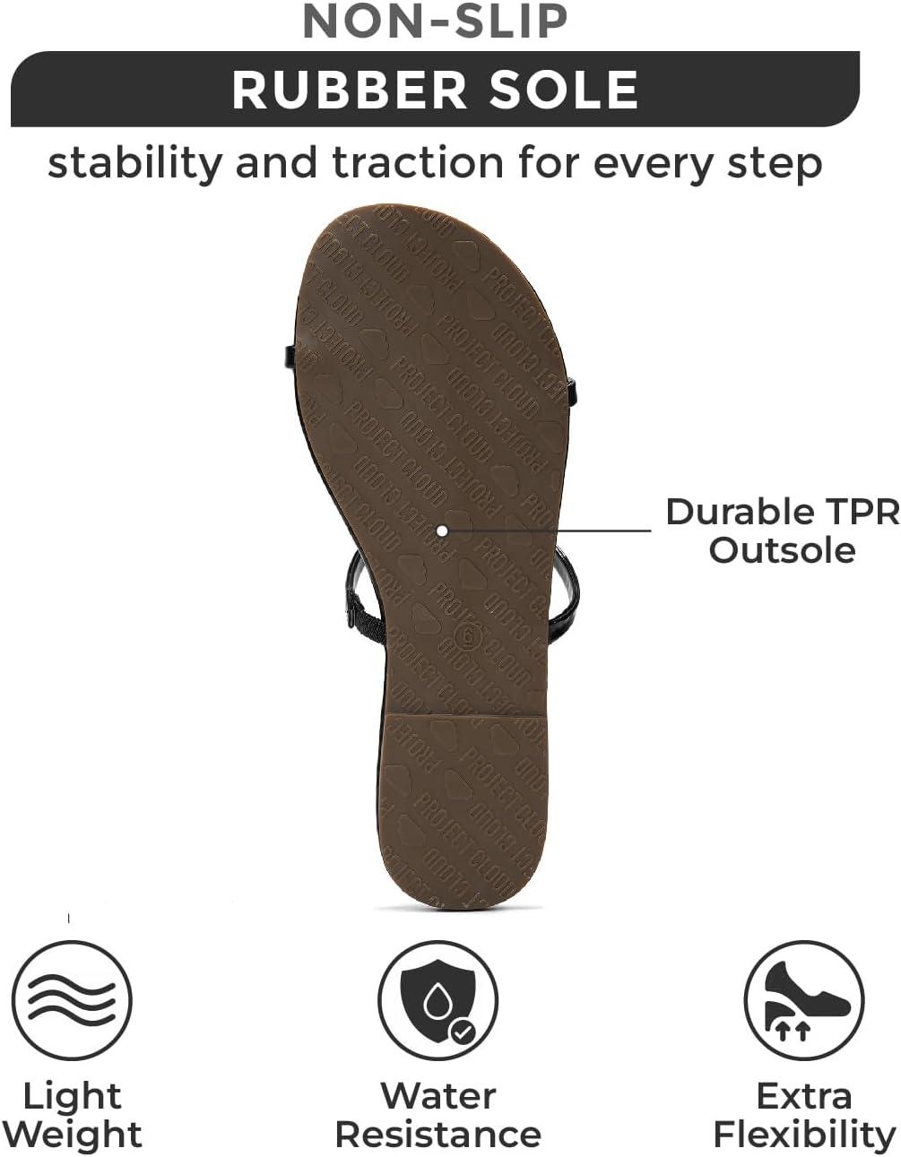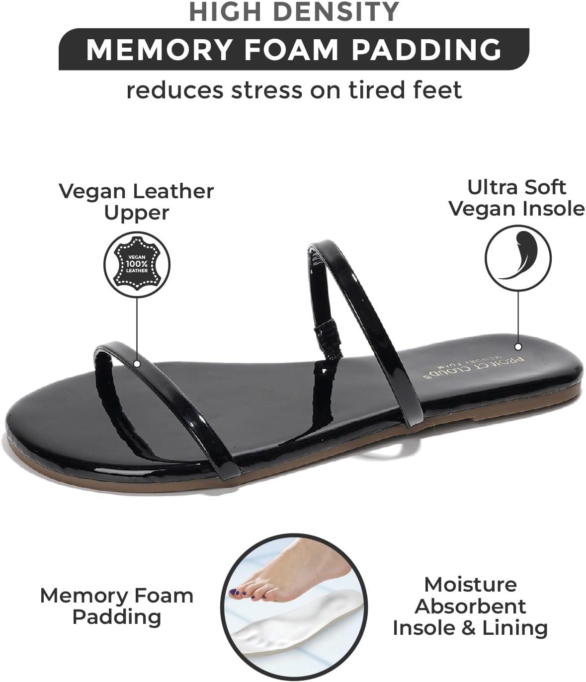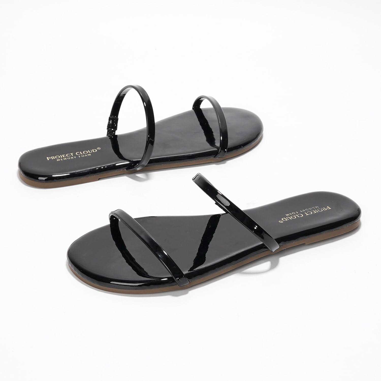 Project Cloud Summer Sandals for Women 2025 – Memory Foam Insole and Vegan Leather Beach Flip Flops for Women – Non Slip and Lightweight Double Strap Womens Sandals (Transition)(Black Patent)