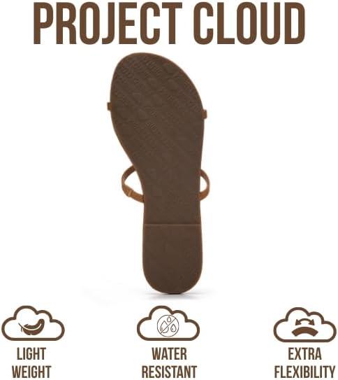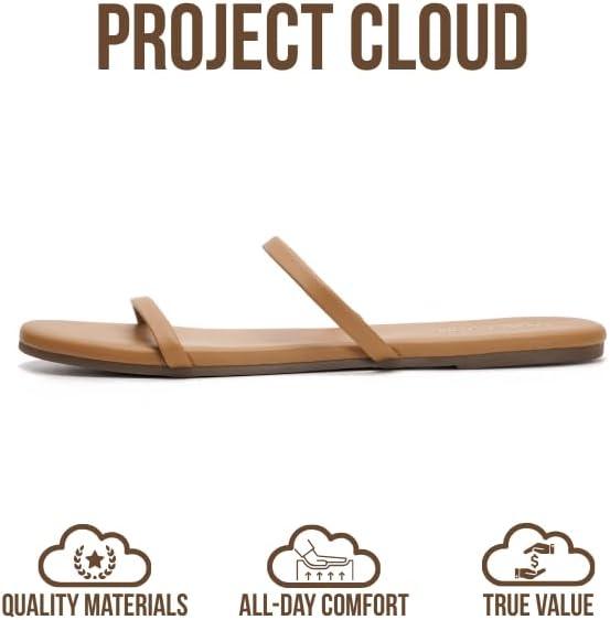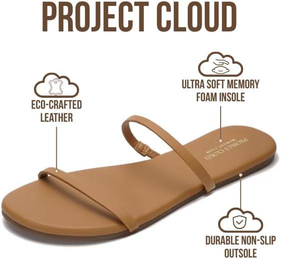 Project Cloud Summer Sandals for Women 2025 – Memory Foam Insole and Vegan Leather Beach Flip Flops for Women – Non Slip and Lightweight Double Strap Womens Sandals (Transition)(Camel)