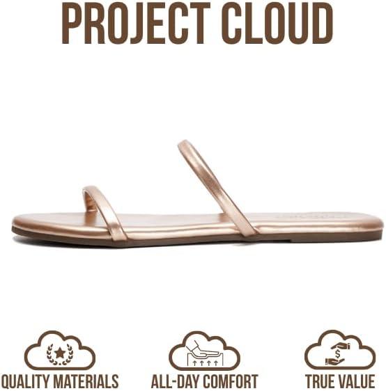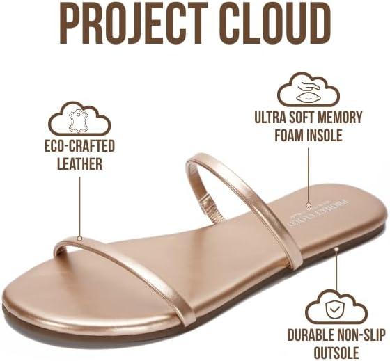 Project Cloud Summer Sandals for Women 2025 – Memory Foam Insole and Vegan Leather Beach Flip Flops for Women – Non Slip and Lightweight Double Strap Womens Sandals (Transition)(Rose Gold)