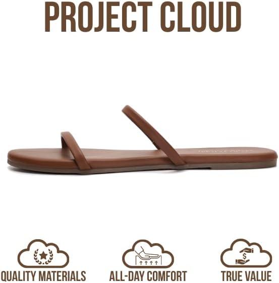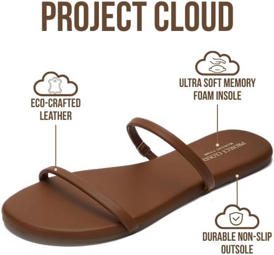 Project Cloud Summer Sandals for Women 2025 – Memory Foam Insole and Vegan Leather Beach Flip Flops for Women – Non Slip and Lightweight Double Strap Womens Sandals (Transition)(Whiskey)