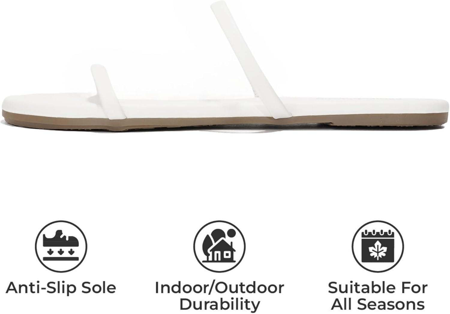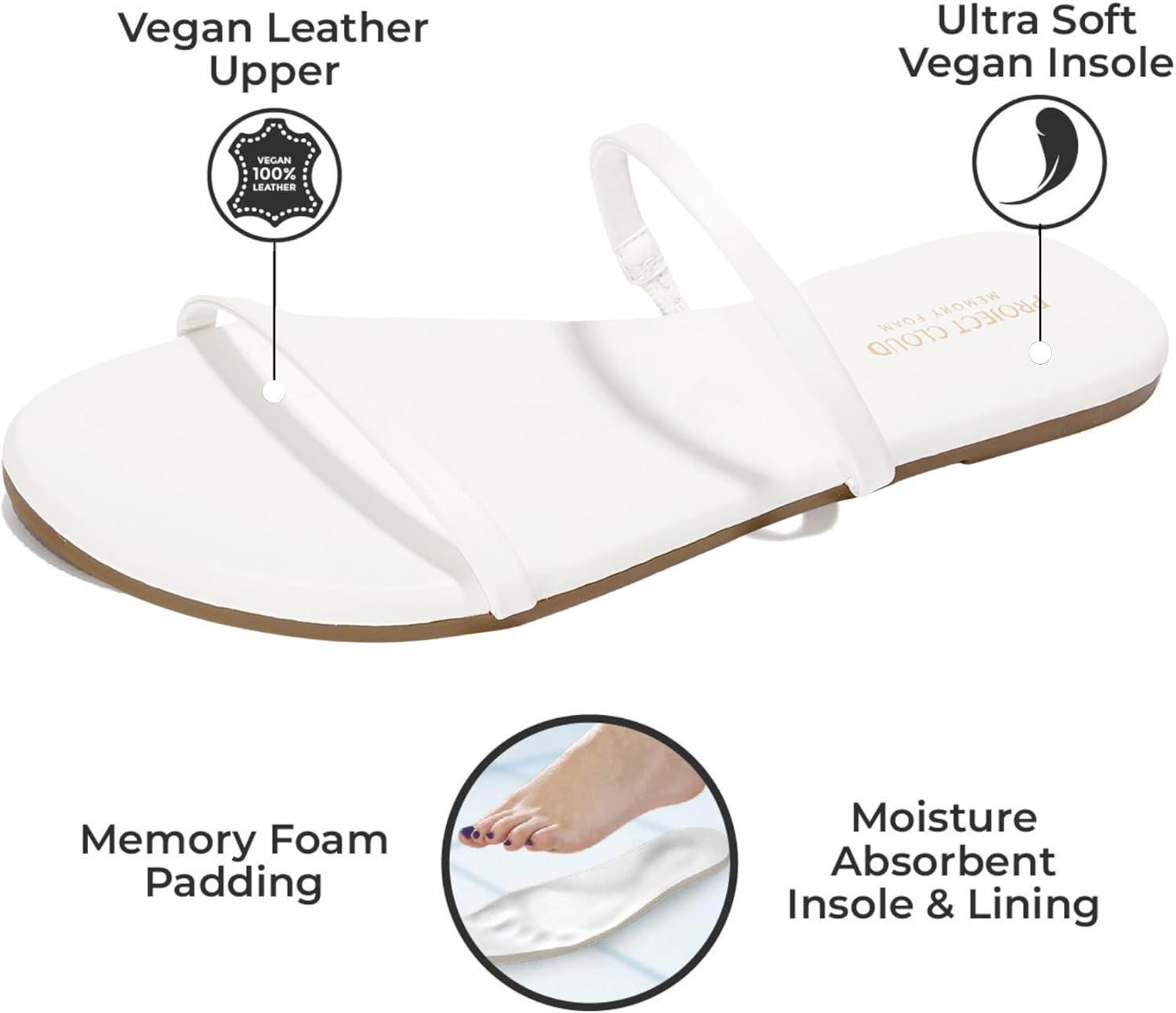 Project Cloud Summer Sandals for Women 2025 – Memory Foam Insole and Vegan Leather Beach Flip Flops for Women – Non Slip and Lightweight Double Strap Womens Sandals (Transition)(White)