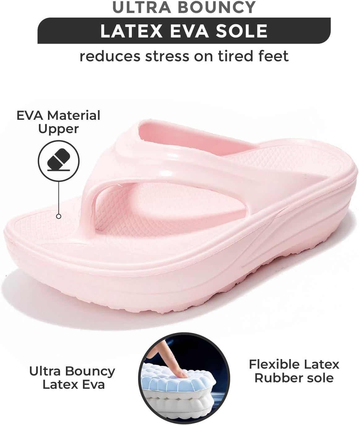 Project Cloud Super Foam Flip Flops for Women Footwear – Memory Foam and Lightweight Platform Sandals Women Beach Vacation Essentials – Non Slip Durable and Soft Slippers (Abra)(Pink)