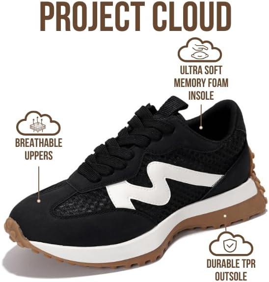 Project Cloud Trendy Sneakers for Women – Memory Foam and Non-Slip Comfortable Casual Ladies Shoes for Womens Fashion Sneakers – Lightweight Lace-up Shoes (Lecco)(Black Mesh)