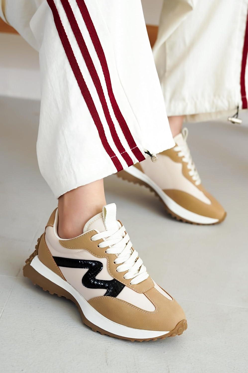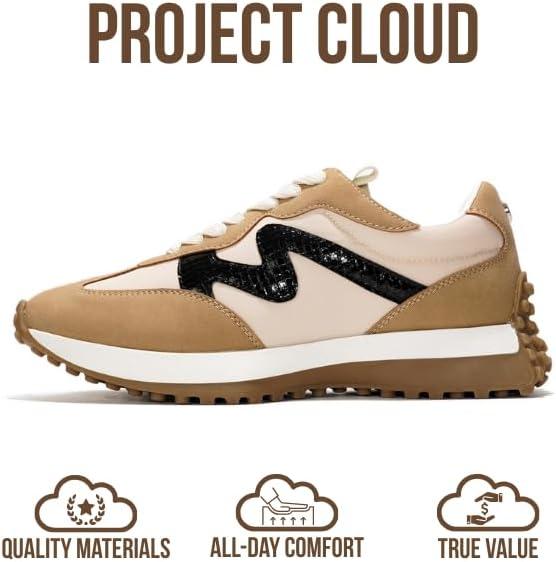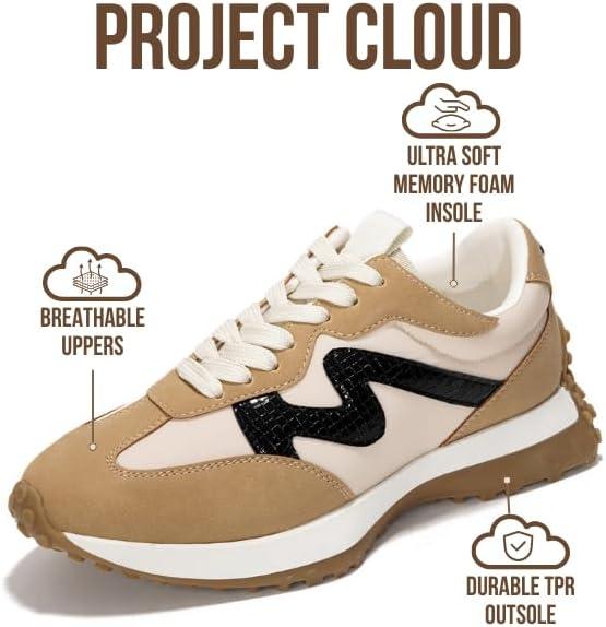 Project Cloud Trendy Sneakers for Women – Memory Foam and Non-Slip Comfortable Casual Ladies Shoes for Womens Fashion Sneakers – Lightweight Lace-up Shoes (Lecco)(Tan)