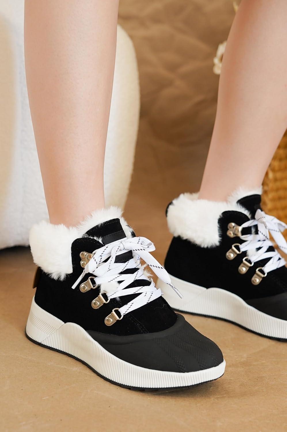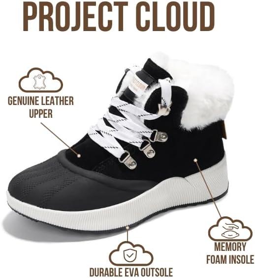Project Cloud Waterproof Snow Boots for Women – Memory Foam Insole Non-Slip Womens Snow Boots & Winter Shoes with Shoe Lace – Lightweight Indoor Outdoor Shoes(Black-hiker Upper)